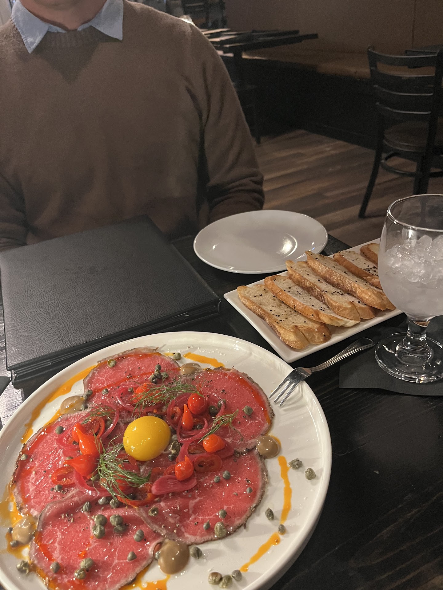 The food itself was phenomenal! The carpaccio came with the exact number of crostinis needed & the sauce added a unique flavor. I ordered the salmon with risotto and it was cooked to perfection and the exact amount of flavor.