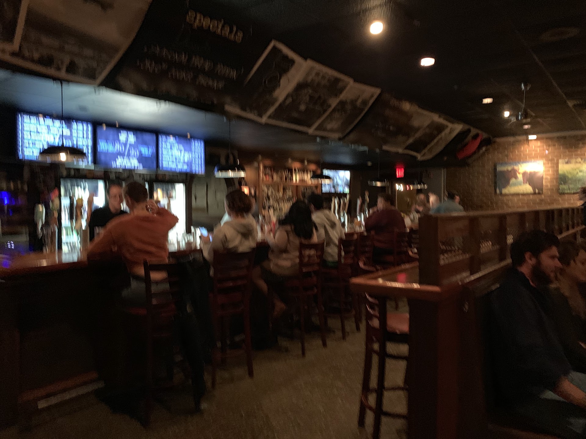 When we walked in, there was a little wait. As I was looking around the establishment seemed cool. There were different types of artwork around that gave it an artsy feel. I didn't notice the cows hanging around until we were leaving. . I thought that was a little weird since we were eating them. However, it was kind of cute lol.