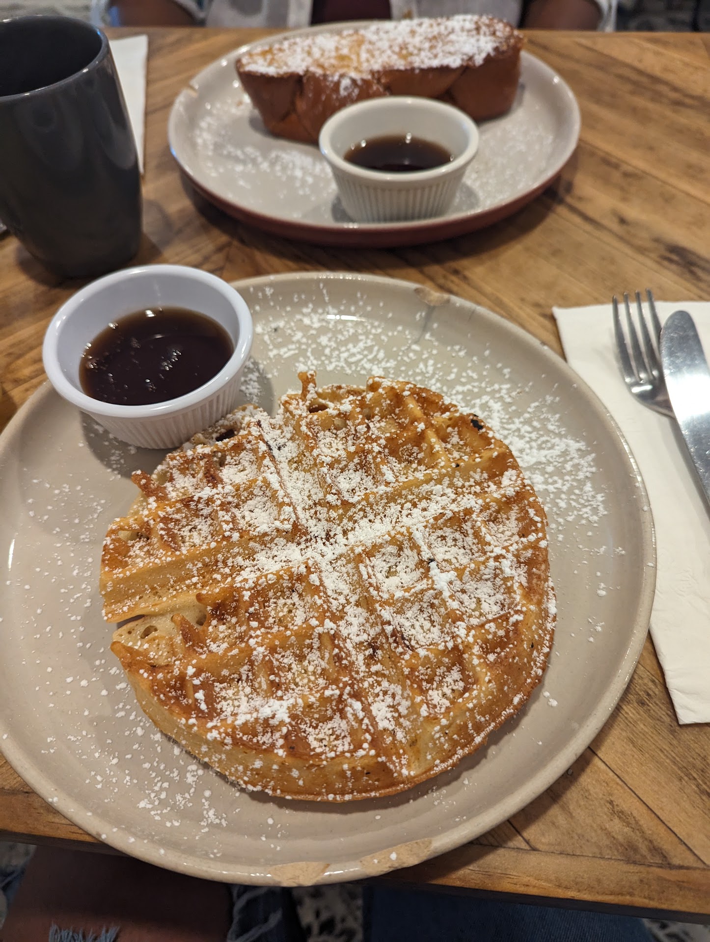 The Brunch:.....π₯π₯π³π₯£π₯πππ I went with the French Toast and Chicken. My server mentioned that was a good choice, but suggested that I get it Banana Foster Style...π...I did of,course, because I'm always willing to take recommendations from the people that work there....This was so sweet and savory, I really enjoyed the cooked bananas topped with walnuts. The French Toast was good, too, but it was just something about mixing the well seasoned chicken with the soft banana and walnuts. It's different but so good!