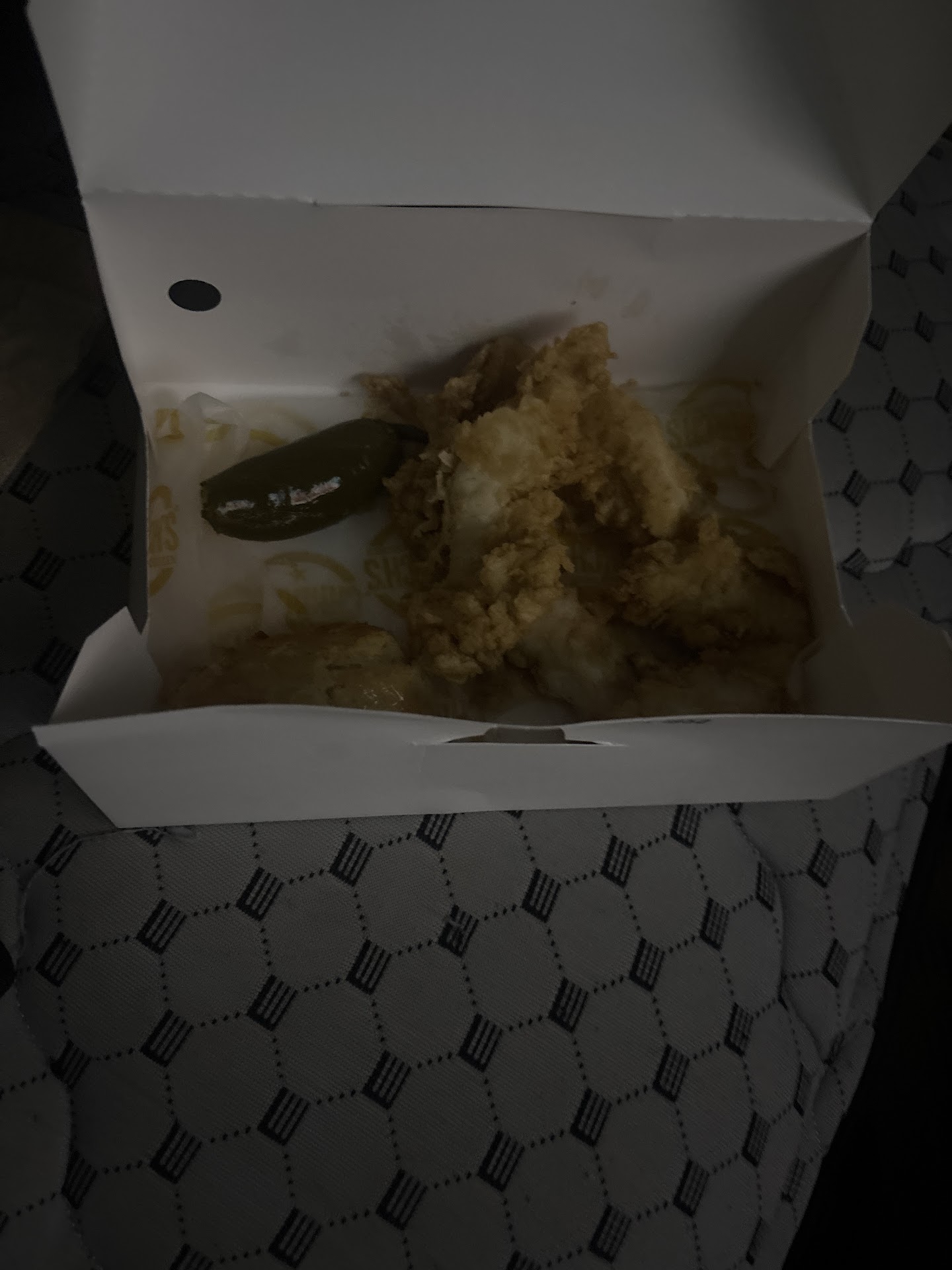 No where on the app or the menu outside did it mention the store no longer sold shrimp. At this point we'd already been at the restaraunt for 20 minutes with no chicken, and we're not interested in waiting 20 minutes for more chicken, so...