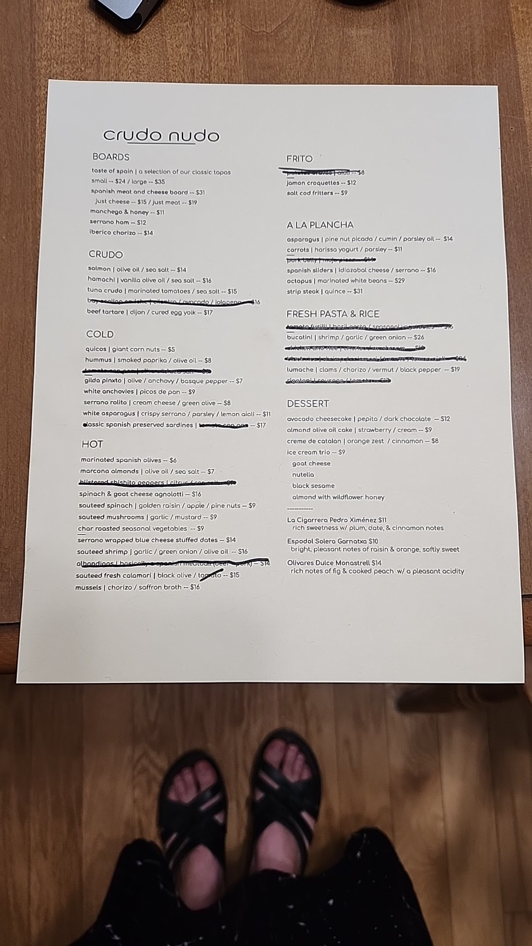 Read moreWe had a long overdue date night at Crudo Nudo last night. Our neighbors recommended the place. Their high praise was spot on. We made a reservation because we heard the place was small. We arrived 30 minutes early for our reservation and were offered a place at the bar while we waited for our table. We found the bar to be the perfect place for us because it was fun to watch drinks being made and to take recommendations from staff and chat with them (we ultimately just stayed at the bar through our dinner). We started with the beef tartare, white asparagus, and calamari and ended with the lumache pasta dish and spanish sliders. We laughed because every time we tried a dish, it became our "favorite" of the night. I thought the calamari was especially interesting though because I'm used to just seeing it fried at restaurants and this was sauteed with olives and tomatoes - perfecto! Our friends told us that the ice cream was amazing but we did not save room. The cocktails were great and finishing off with a glass of sherry was perfect. We asked the bartender to make a recommendation on the sherry and it did not disappoint. Thanks for a lovely night out! We can't wait to come back to try more...