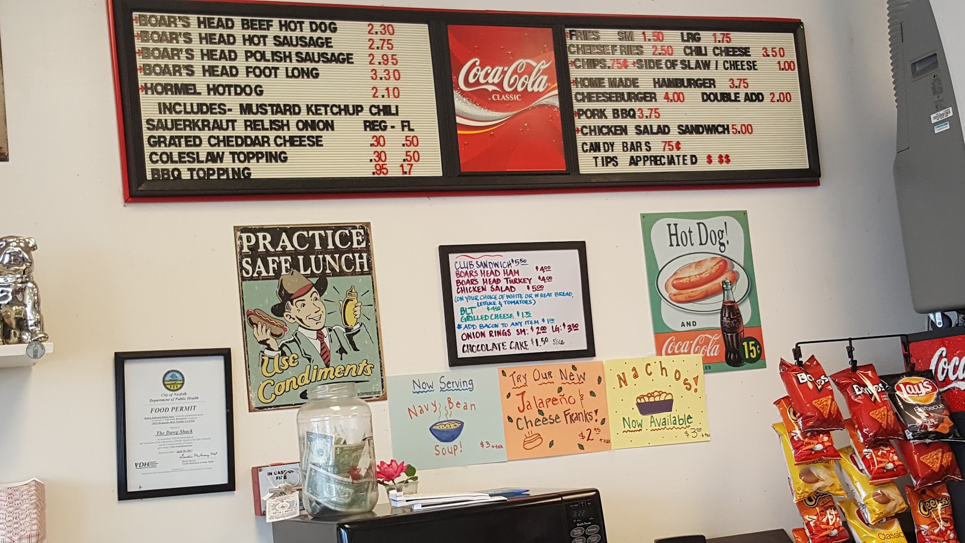 The Dawg Shack, Norfolk, Va This place is located at the intersection of Little Creek Rd and Chesapeake Blvd behind the Shell gas station and in the strip mall. I didn't about this place. I'm not sure how long it's been there. Most of these hot dog places have a typical hot, maybe some sausages and if you're lucky, you may be able to get a foot long. This place had foot longs and they slice them down the middle and the chili got in the dog, DELICIOUS! I'd go here...