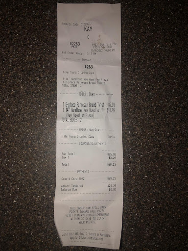 Read moreAlways have a good experience with the staff here. Over the phone and through delivery, they are always excellent and very helpful. This location (NOT the staff) gets two stars because they are serially understaffed. The restaurant frequently has to cancel or refuse orders because there isn’t anyone trained to make food in the kitchen… three or four hours before closing. The team works hard, and I can tell they are struggling to meet the demand at this location. **Dominos, hire more staff so you can adequately fulfill orders during your regular posted hours. Also, the delivery drivers at this location are exceptional, and many operate at all hours on bikes. Consider giving...