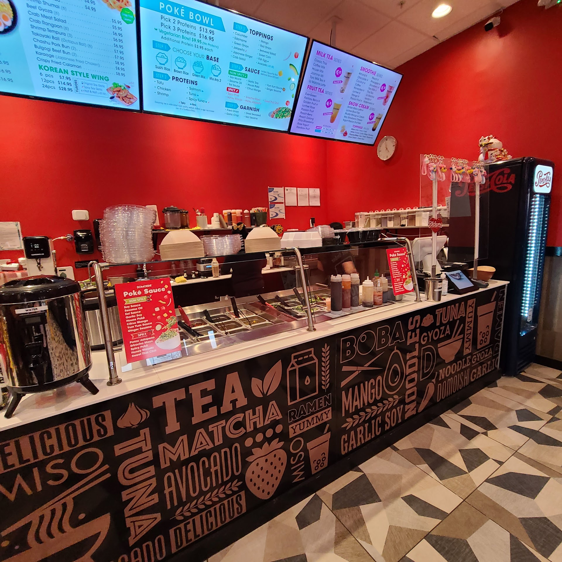 Read moreMy family is a huge fan of ramen and poke bowls (and I'm a fan of boba so you can imagine we were so interested in this place the moment it opened up!) We never got the chance to get food from here but for tonight that all changed! We just finished a 2 day drive home from Wisconsin and we definitely did not feel like cooking when we got home and we figured since Domoishi is right across the street so we might as well order! I was nervous at first because usually to-go food is never as good as getting it fresh in the restaurant and I didn't want that to ruin my perception of this place. My parents both got poke bowls and I got ramen and thai boba tea. Needles to say, we were SO impressed. The to-go packaging was out of this world. My ramen was still hot and tasted fresh and my parents said their poke bowls tasted like they were made minutes ago. We loved what we got and can't wait to continue ordering from here! And I bet it tastes even better in...