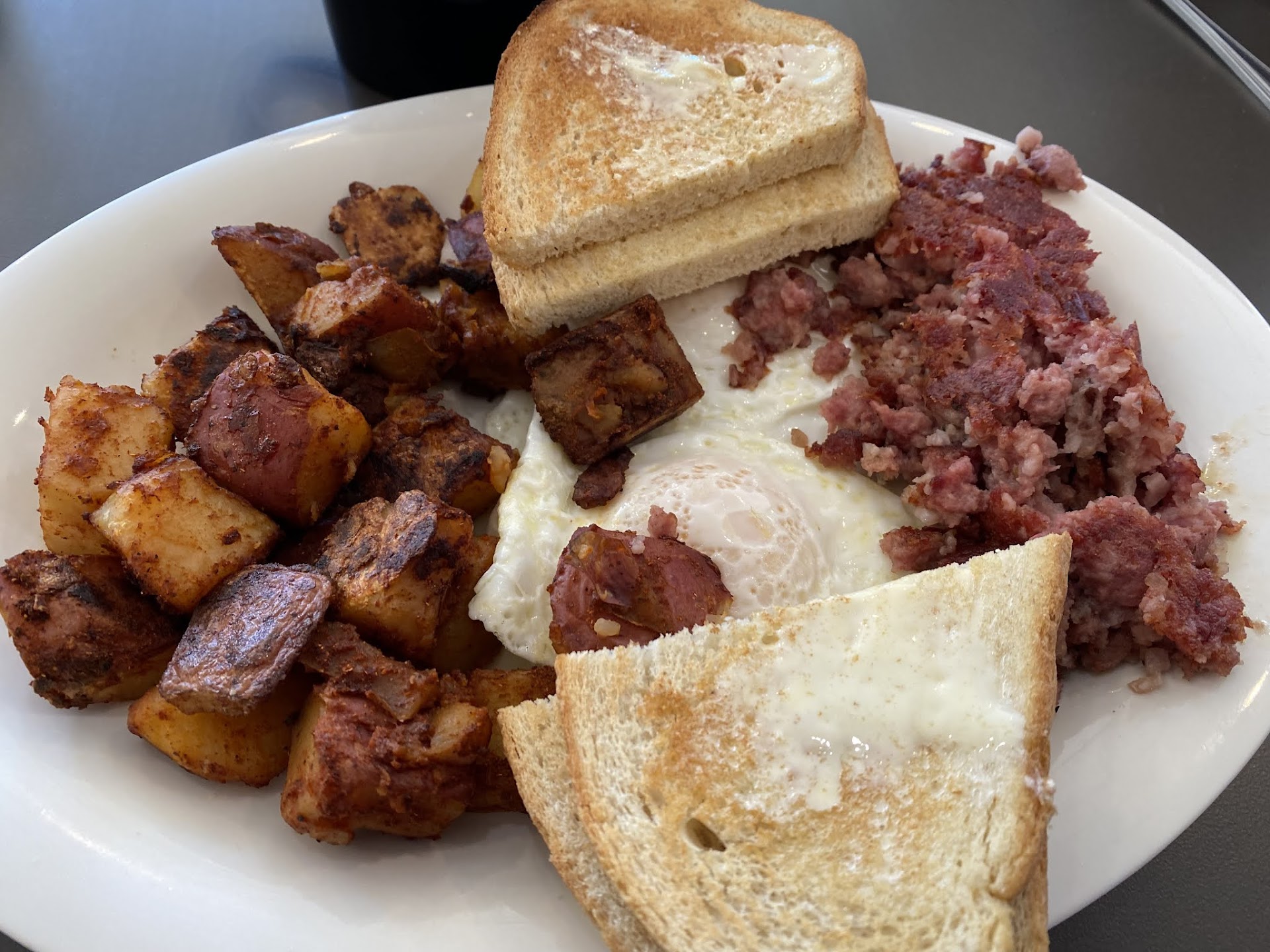 After chatting up for a few minutes I ordered the 'Founders Hash & Eggs" breakfast. This dish includes the Founder's recipe 'corned beef hash' along with two eggs to order, toast (4 bread options) and then your choice of home fries or grits. I chose the home fries.