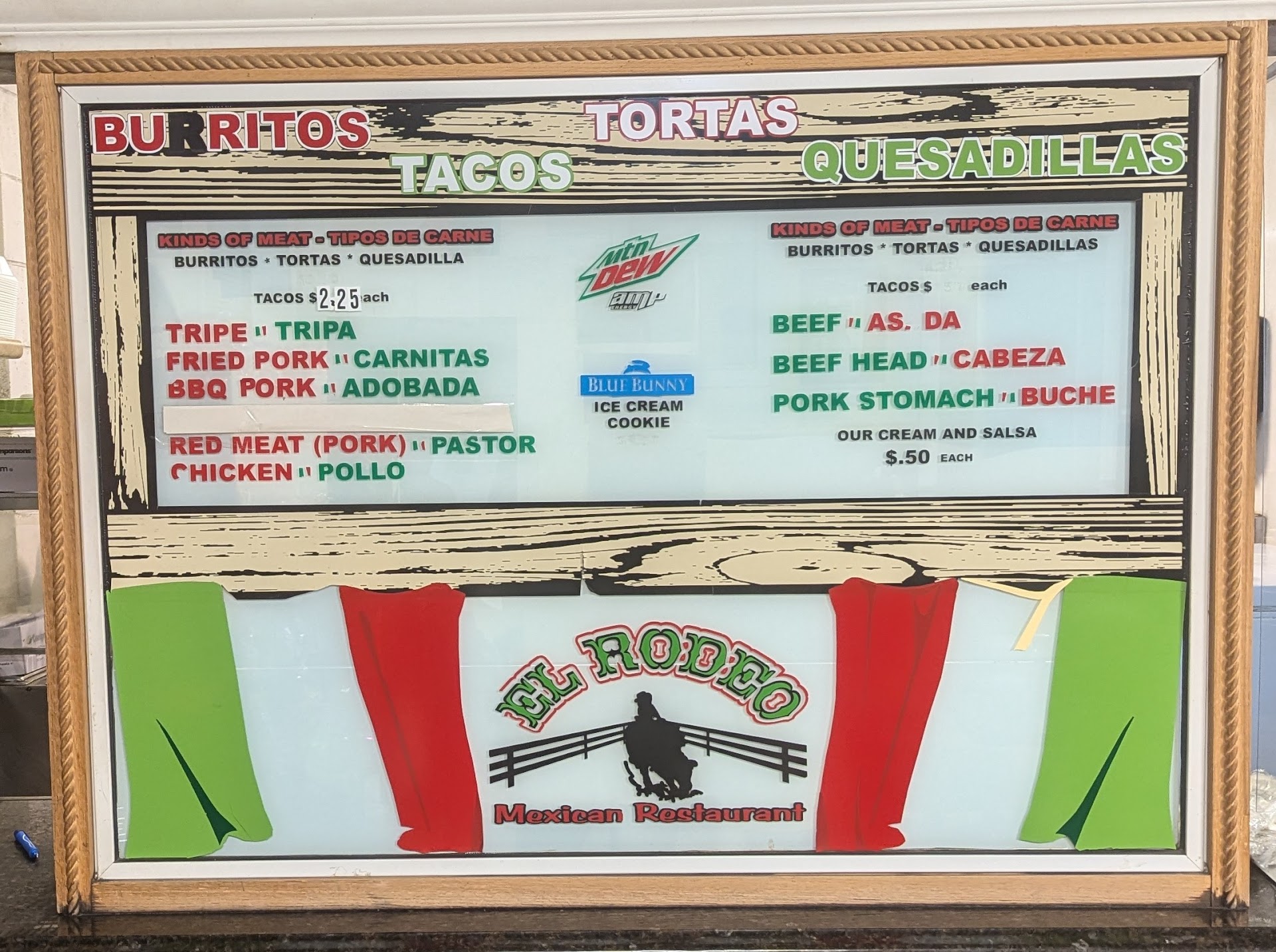 Other Mexican eateries have better atmosphere and are more like typical sit-down restaurants, while El Rodeo is just 1 small brightly-lit room with a few tables and chairs strewn about. It feels more like an order to-go type of place, which is what most patrons seem to do. I don't care much for atmosphere personally, as it just means prices are much higher and you're expected to leave a big tip on top of that, so El Rodeo is definitely my...