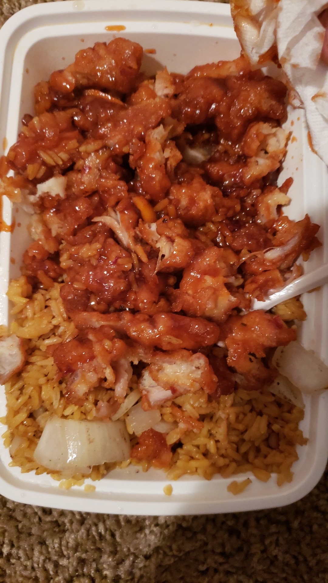 Yesterday I went to this place to order three chicken wings dinner for my kids and me the lady that waited on me was on the phone then she mess up my order she only gave me one fried chicken wings and fried rice with onions so she said here you go I said three orders of this then I paid for two ice teas so again she was on the phone wasn't paying attention I get my orders and I already paid for my two teas she look at me saying 3.50 I said I already paid we get home to eat our food the chicken wings was bleeding and the rice was hard do not eat here...