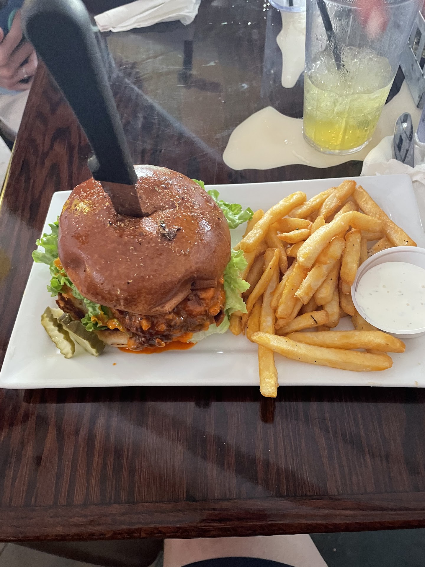 Ā Ā Ā Read moreWell this was a hard one for The Hood. It started out ok they didnāt seem that busy but we were told 20 minutes. After we were seated it took a while for anyone to come around actually gave us enough time to order our drinks and what we wanted to eat. So letās start off with atmosphere- nice some outside seats on the street inside nice and well thatās it for that. Food - not bad The Hood had a sweet chili chicken sandwich with some fries tasty it was. My peeps had other dishes and all said it was good. Buffalo chicken sandwich and steak and eggs for the peeps overall good stuff. Well now let me get to service - I will start off to say our waitress was good seemed very busy but did check on us and had a good attitude. Now here is where it gets juicy so one of my peeps didnāt get their food with ours and they order a specialty drink also none of it came out. Couldnāt find our waitress so we got the hostess and mentioned it and she stood there with a blank stare and then another waitress came up and said that we were waiting on the steak, must have had to go to farm to get it and then proceeded to tell us that the bar was backed up with drink orders for our drink. Well that apparently was not the case our original waitress came around the corner and apologized for forgetting to put the drink in and mealā¦. Oh O!!! So my peep thanked her for her honesty but told her she should tell the other waitress not to lie to paying customers. The Hood says be honest⦠well there you go food and drink finally arrived after everyone else was served for a while. So I say to hair of the dog tell your waitresses to be honest most people will understand. I said most people. Go if you like but the Hood will stay away for awhile. Be kind with each other! The Hood is off again for another food adventure!! Remember follow the Hood for great adventures! And no that wasnāt the drinks in the picture that...