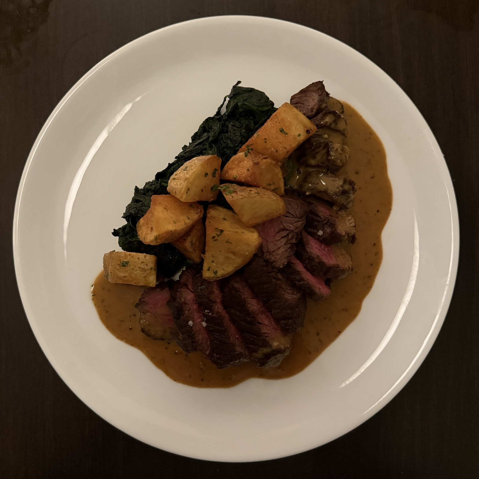 The mains were also excellent. The hanger steak was cooked to perfection and paired great with the creamy spinach and crispy potatoes. The house made pasta was delicious and fresh.