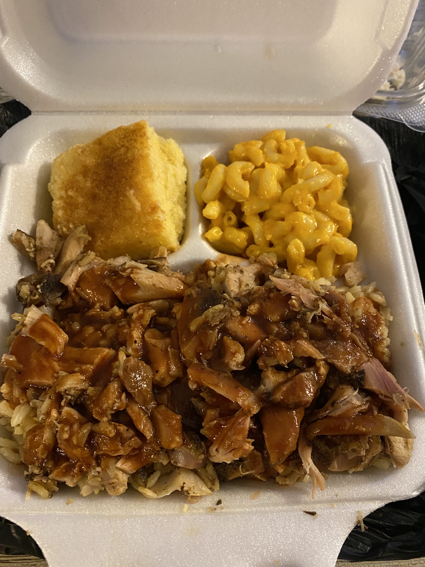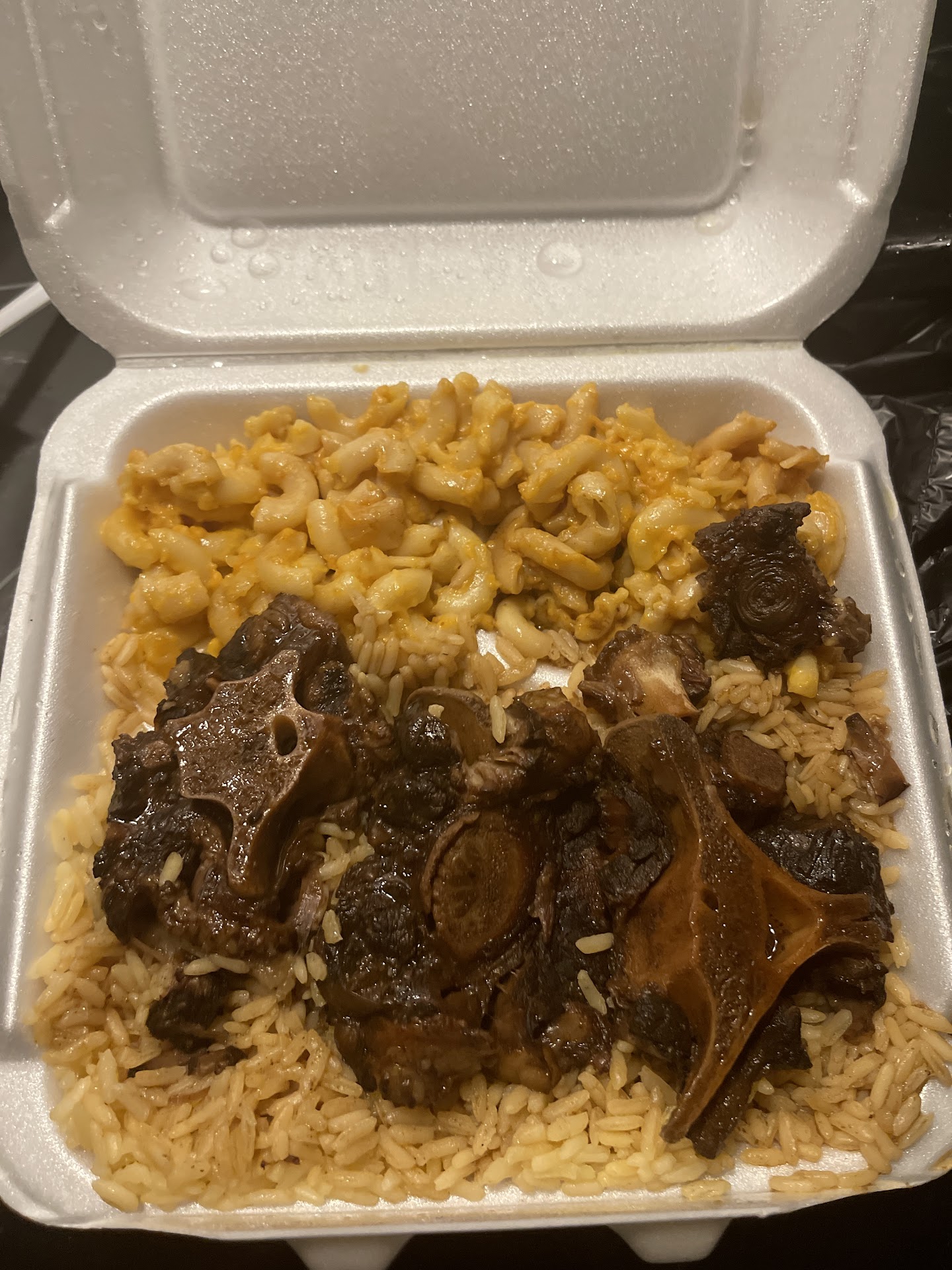 Read moreThis was from a delivery order. I ordered jerk chicken, spicy sauce, yellow rice, Mac and cheese, corn bread, and rum cake.
