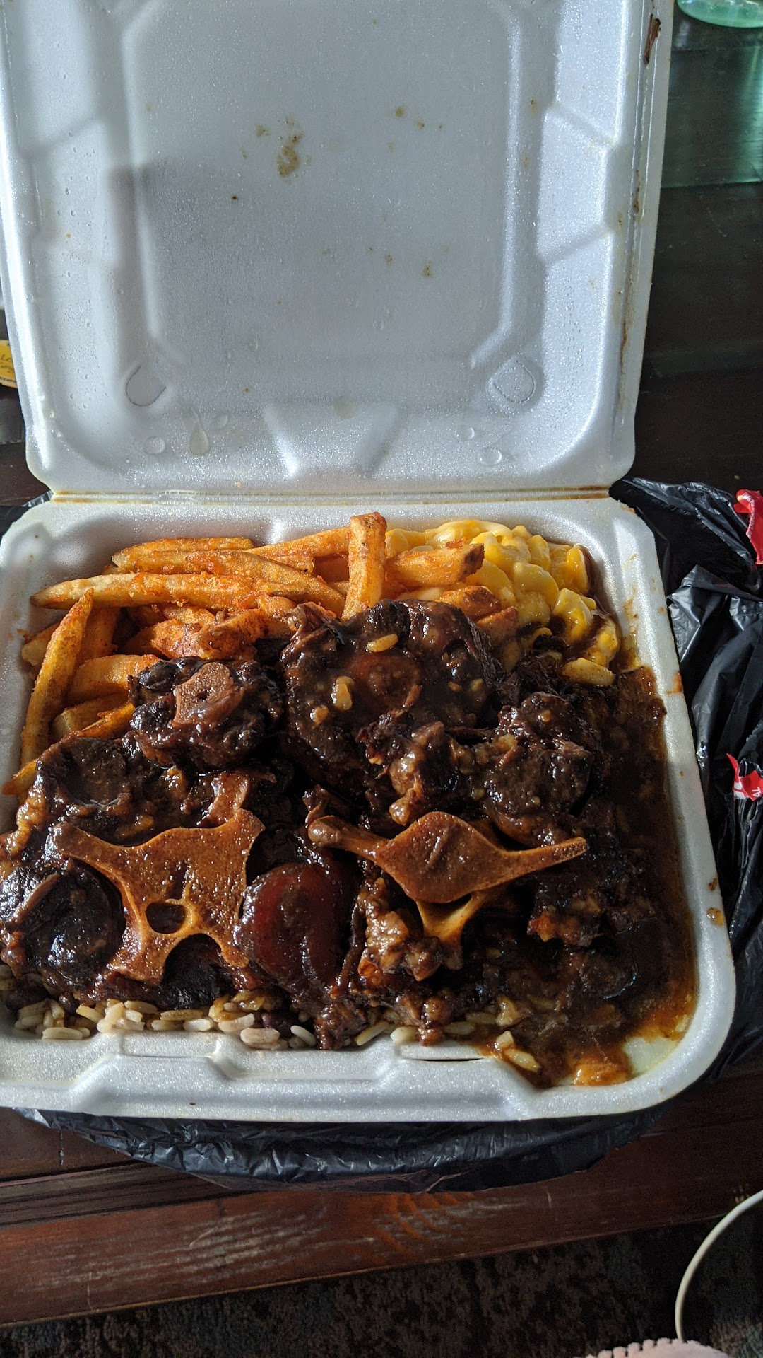 The meat came diced, and not on the bone, which wasn’t expected but there was a very good portion of it and it was hot and very tasty. I was hesitant to really lay into it out of fear of finding a bone but didn’t find a single one in the meal. I do not believe I got yellow rice and while the alternative was good, it wasn’t what I was ordering. It looked like rice and beans and it was still good.