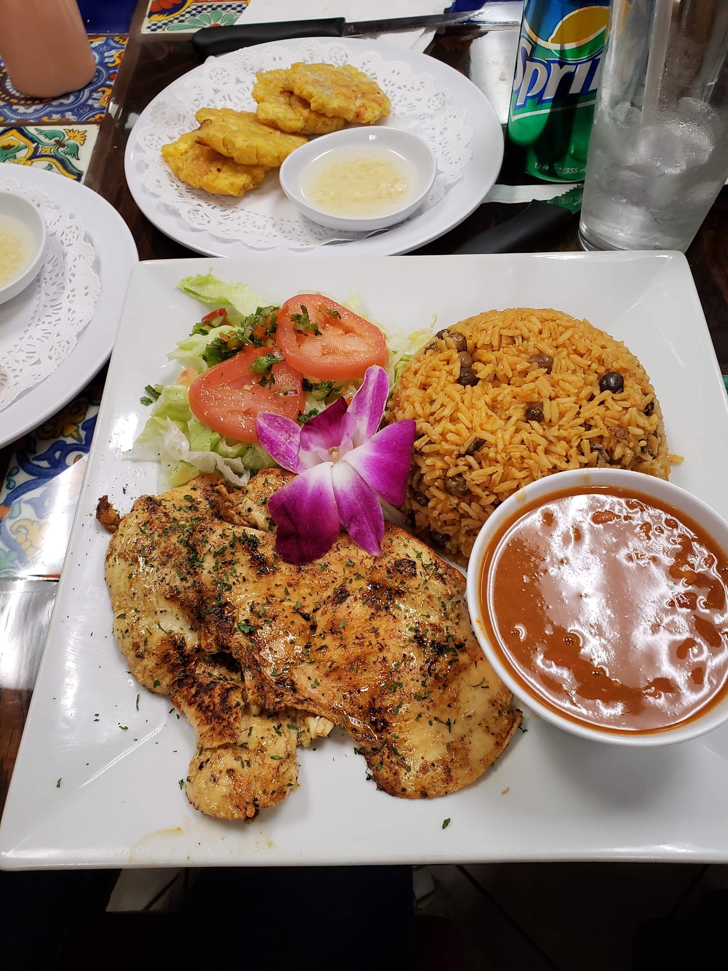 Read moreI was looking forward to come here. I even told my team of 18 about this place. I decided to go this evening on a “Scout mission” and try it out. It was a mistake. Arrived at 6:20 pm. I was Asked to sit between two industrial size fans. I brought my one year old with me. They had a high chair. The waiter was nice but not great. I sat with the same almost empty glass of water for 45 mins. I ordered a garlic chicken breast with rice/beans and ripped plantains. A fairly simple dish that doesn’t take long to cook. I asked for an update 40 minutes in as there were only two other tables (4 people) ahead of me. Meanwhile, there is very little going on, the place only had four other filled tables. I was about to leave as my baby looked so hungry. 45 minutes later got my dinner without the fried plantains. It took another 5 minutes for it to be ready (no skills necessary, just fry them but came out burned anyways sigh). Chicken breast was chewy, the beans/rice was good. I fed my kid and went to pay as I didn’t want to have to wait for the waiter for what now feels like an eternity. Again, nice people. Cashier asked me about the service after she noticed I only left 15% tip. I told her it was slow. She said “the kitchen was busy”. I mean...I was there the hole time and there was only two orders in front of me. Don’t buy it.