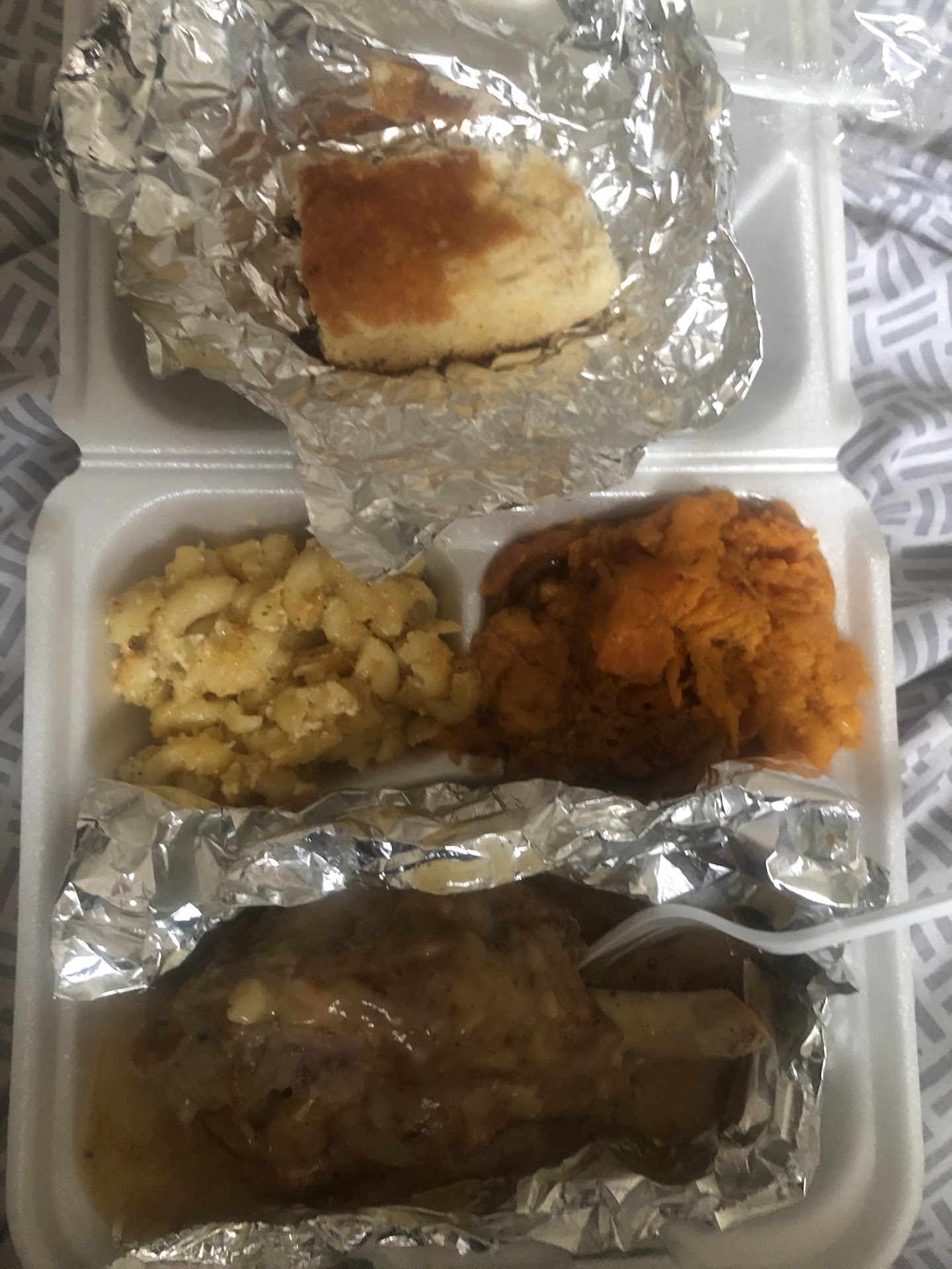 I hate to leave bad reviews especially when trying to support black business but this food was so terrible i had to leave a review on doordash and come here to try to save someone else their money as well. This was the absolute WORST âsoul foodâ iâve ever had in my life. I wouldnât even give it to my dog. The mac n cheese was justâŚâmacâ with pieces of cheese here and there. No salt just A LOT of pepper and it was very obvious that it was not fixed today. Judging by the reviews they obviously do not care about their business bc so many people have been complaining about the same issues yet nothing is being changed. Doesnât taste like theyâre even trying to serve quality food. The yams tasted straight from the can with a sprinkle of nutmeg. The cornbread was really soft..cake like and tasted like a watered down pound cake. The chicken was soggy and undercookedâŚiâve never had a plate where EVERYTHING was terrible like this & i ordered a extra side of yams and mac n cheese so safe to say i wasted my money and will NEVER order from here again. My husband AND MY TODDLER refused to eat it as well. PLEASE DO BETTER!! The best part of all of this was the...