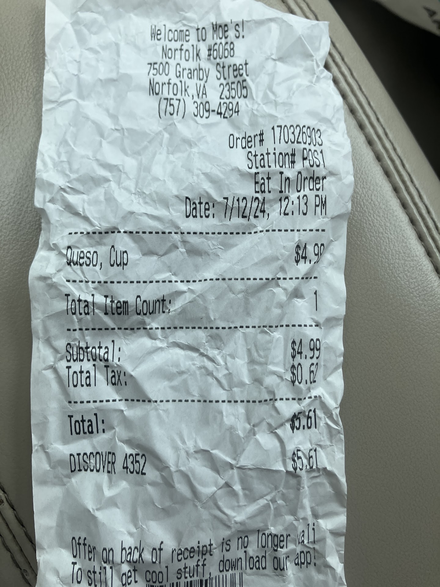 I miss the Moe's of the early 2000s. The Moe's of the 2020s are downright garbage. I will never set foot in a Moe's again. I hope this location along with the whole chain goes under and closes for good one day.
