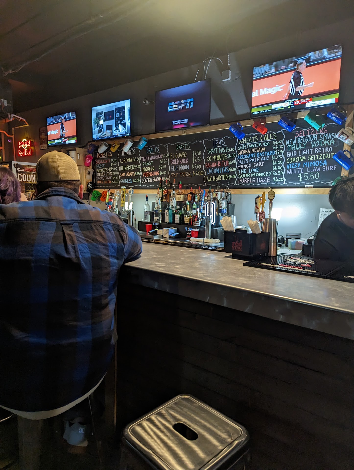 I brought my wife and another couple to eat here prior to a concert on a Sunday. We wanted Bloody Mary's....they didn't have Bloody Mary mix. We wanted BBQ ribs....they didn't have any ribs. My wife decided she wanted a Mojito....the waitress said we can't make that, "this is a college bar and we don't make those fancy drinks". Really.......