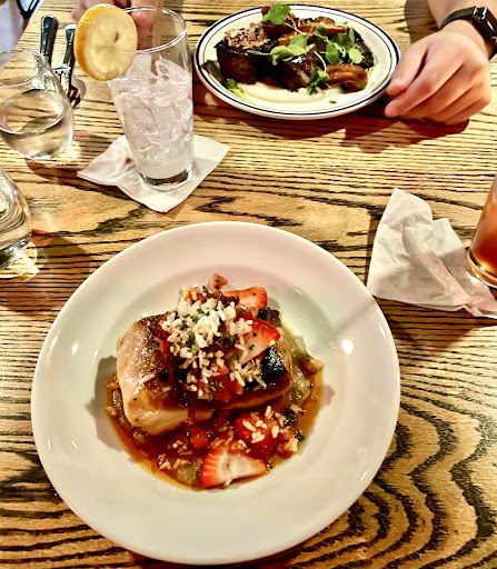 There are only small 2-top circular tables. We had two side by side for our group of 4, but it was a bit awkward to share appetizers. I joined the group a couple minutes late, after theyâd ordered their first round of drinks & apps. The server came to take my order, but then left before taking the dinner order for the rest of the table. I guess they thought the other 3 people were sharing the charcuterie as their meal? Someone had to get up and find them at the counter to tell them the rest of the group was ready to order as well.