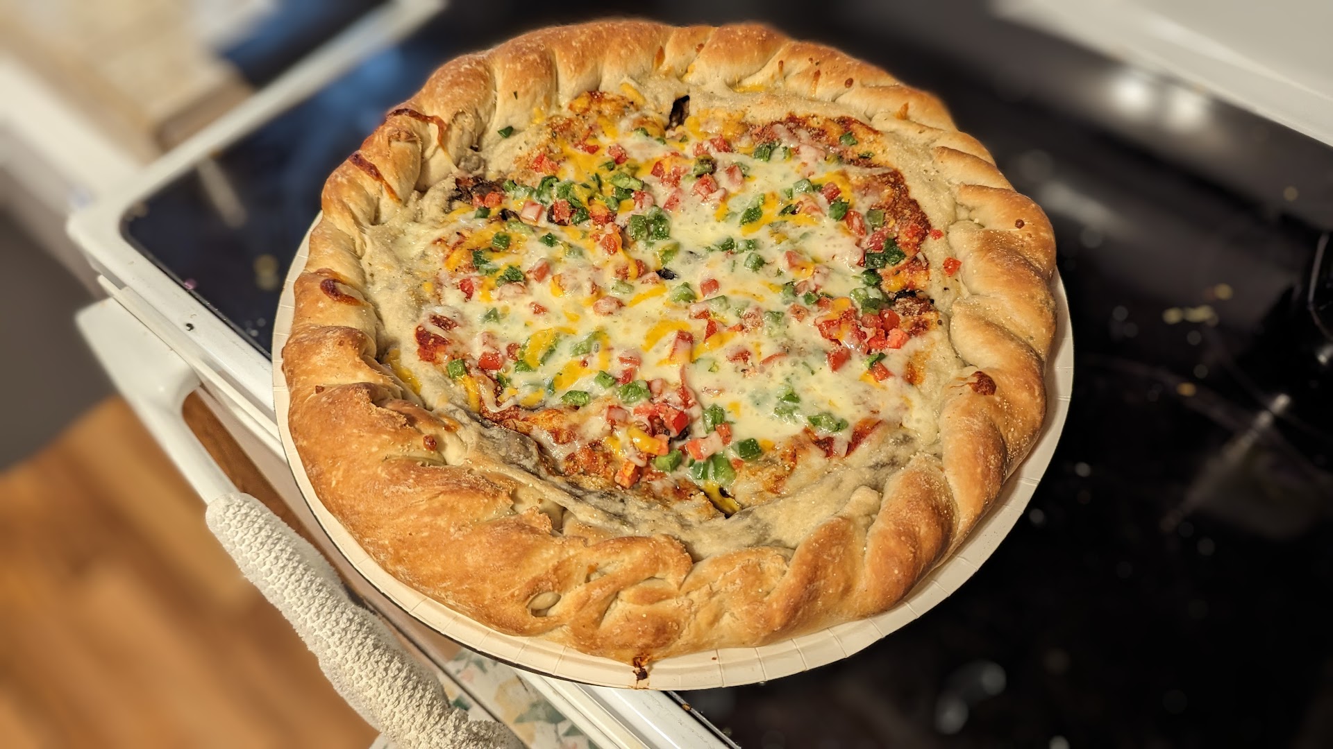 I ordered a couple 2 topping large's for 'pick up in store asap' via the app (which is user friendly) as the website literally never works. My pizza's were just getting finished up when I arrived about 5 minutes later and the staff was really nice and friendly. I got the original crust which seemed better than usual and they definitely didn't skimp on the hamburger or green peppers. They do pretty good here at my Norfolk Ne location. My pizza's were more better (is that a thing?) than usual I actually took a pic in the oven...