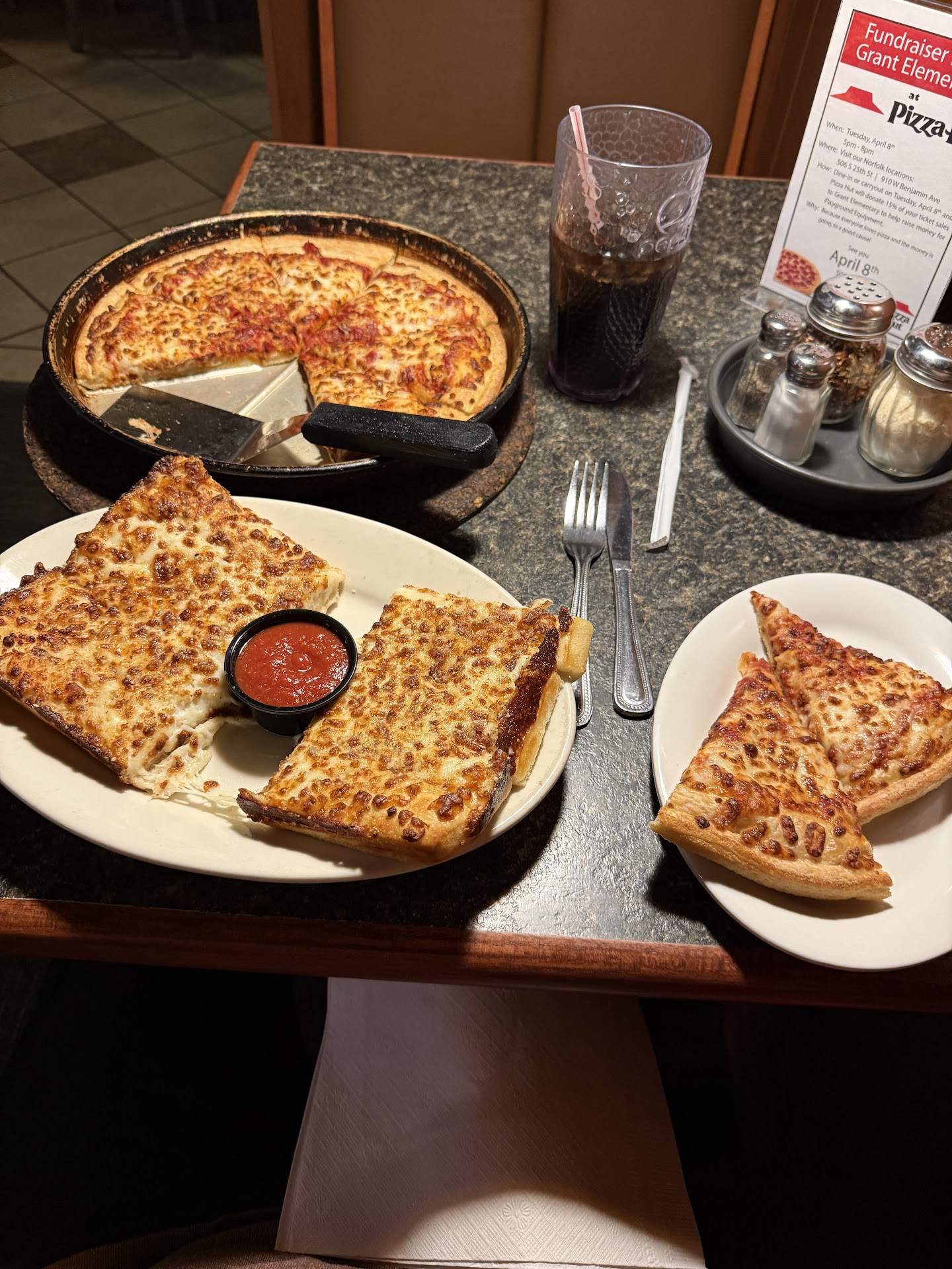 Read moreOrdered for carry out. They were out of personal pans so they said they could do a small. Also ordered 2(two) family orders of cheese sticks. Waited in the pick up like for 15 minutes to be handed two boxes. One pizza and one we thought cheese sticks. So they said they would make more breads sticks. Waited 20 more minutes to get a regular sized box of bread sticks open to see cheese bread. No bread sticks what so ever. When I called they said they would credit my account for free bread sticks the next we come. I said I wanted them to deliver them or refund me. She then said they were out of bread sticks. Why wasnât this said from the beginning? She then said she couldnât give me a refund until she spoke with her manager who she thought would be in on Tuesday. She then said she would call her for a refund and call me back. I still...