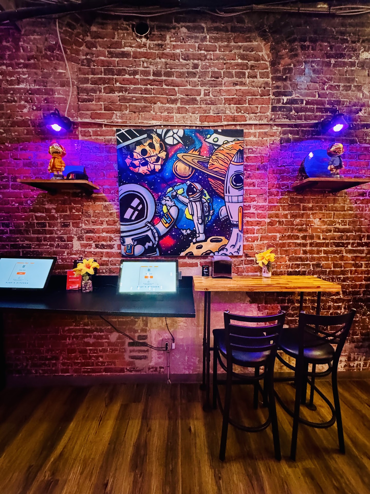 I randomly found this place on Google while searching for restaurants to have lunch at and I am glad that I came across this place! A group of friends and family came along with me to try it and we had such a great experience. I definitely love the ambiance and atmosphere of this place as it is very artsy with some amazing paintings on the wall! I also love the fact that they played some really good old school r&B music our entire time there. Literally just sitting in there and singing all day would have been perfectly fine for me! The staff is also very nice! We were greeted and assisted with everything by Cici! She was the sweetest and most polite person! Great personality and very helpful throughout our entire visit. We also were able to meet the owner. PJ and he was pretty cool! Very personable and down to earth! Now to the food! It was great that they had options because you could either order from the kiosk or order through the waitress. I ordered through the kiosk and it was fast and easy. I ordered the pulled oxtail sandwich with fries and a drink. That oxtail sandwich was amazing! Very flavorful, had a lot of meat, and was juicy! It's not that often where I find places that make good oxtails so I definitely want to come in the chef that made this meal! The fries were also really good! I look forward to coming back to this restaurant and trying other options there. I saw the plates that my friends and family had and it looked really good! If you're looking for a good chill spot to have a good meal and listen to some good music, I highly recommend you come to this place! And the prices are reasonable so you're not going to pay an arm and a leg just to...