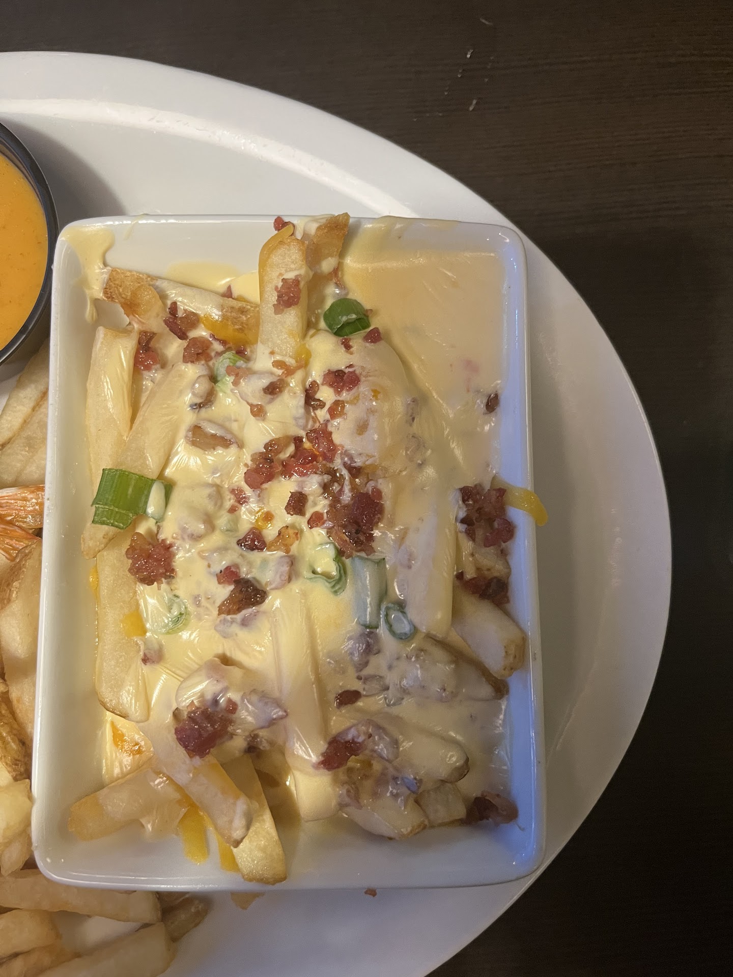 I finish my call and do not eat anymore of my sandwich and I am also not checked on again by either the manager or my server- My plate is still completely full... I pushed the bun to the side since it had the buffalo sauce on it... and I had not had anymore of the chicken and there were still fries on the plate- at this point I was over it. My server comes over and asks if I am finished with my plate -which is still full. I say yes. She returns with my check- nothing had been compâd - even after everything- I guess that it is normal at this location for people to leave their plates un-touched?