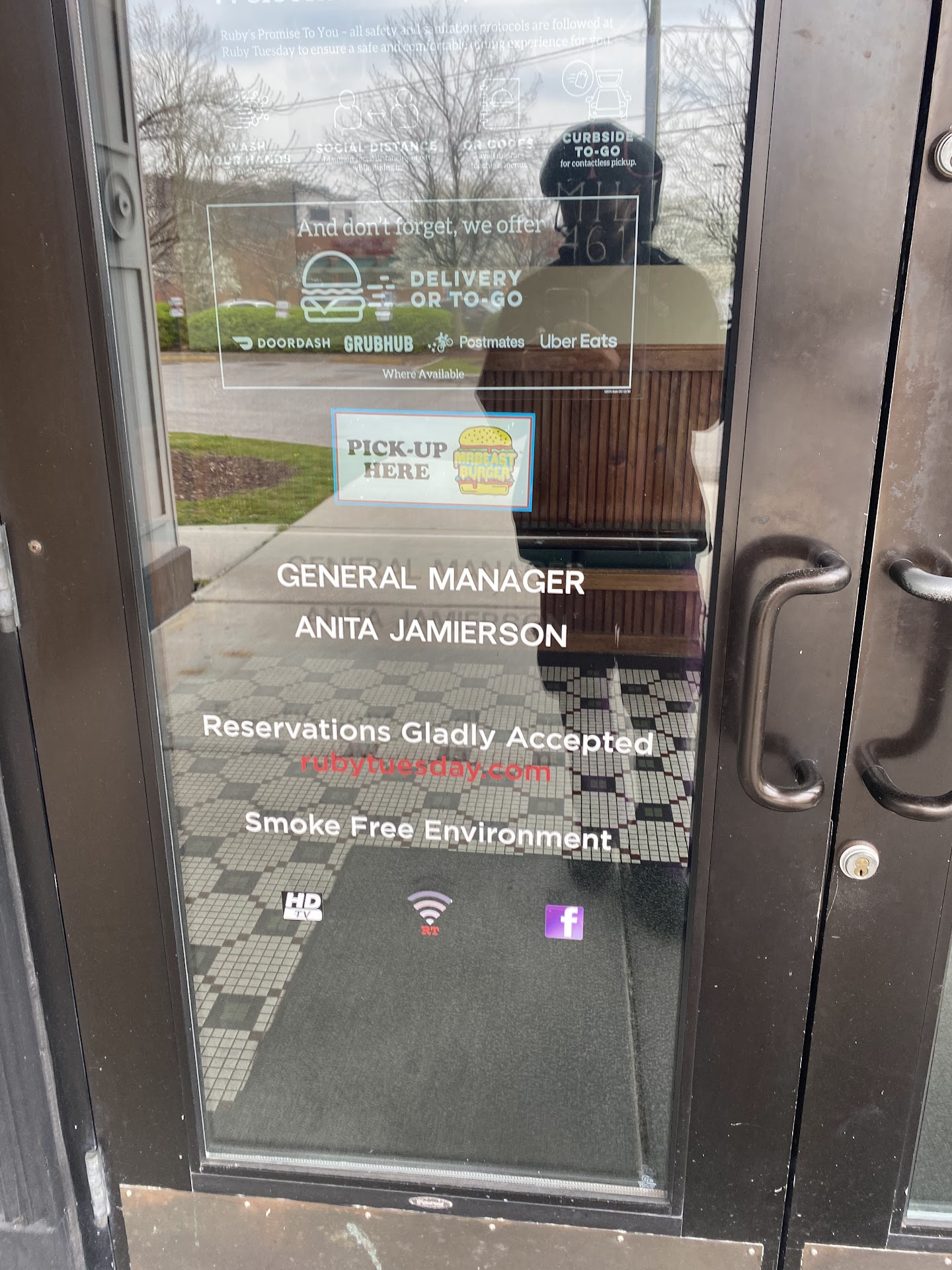 Read moreMy sisters and I came here for lunch on a blistering Thurday in January. It was not toⰠbusy so we were seated immediately. We were asked if we wanted a table or a booth and we chose a booth.. The booth and seats were clean. Our waitress was named Shonda and she immediately took our drink order. Shonda brought our drinks back in 3 minutes and then took our order. All three of us ordered their lunch special which consists of a smash burger, fries or tots, and the unlimited salad bar for 8.99. Great deal...or so we thought. The salad bar was clean and stocked. Everything looked fresh and was delicious. The burgers however were a different story. The burgers were cold, the cheese never melted, and the lettuce wet, frozen, and slimy. When I bit into the burger, the lettuce actually made a crunching sound from the ice on the lettuce. Everyone's burger was like that. The actual burger was dry and had absolutely no flavor. And it definitely was not a smash burger. My fries were cold, but my sister's tots were hot and delicious. Our waitress Shonda was wonderful. She brought us our drink refills in a timely manner and was just very attentive. She had a great personality! When she heard about our burgers she immediately called her manager over to talk to us. The manager offered to make us new burgers and we asked for them To Go. I heard that the manager went to the kitchen herself to make the, which I thought was nice. When Shonda brought us our burgers to go, we saw that the manager gave us fresh fries and tots as well. The biggest take away I have is mistakes happen and it won't stop me from going back. But most importantly, Ruby Tuesdays need to change their hamburgers. These are the worst burgers I have...