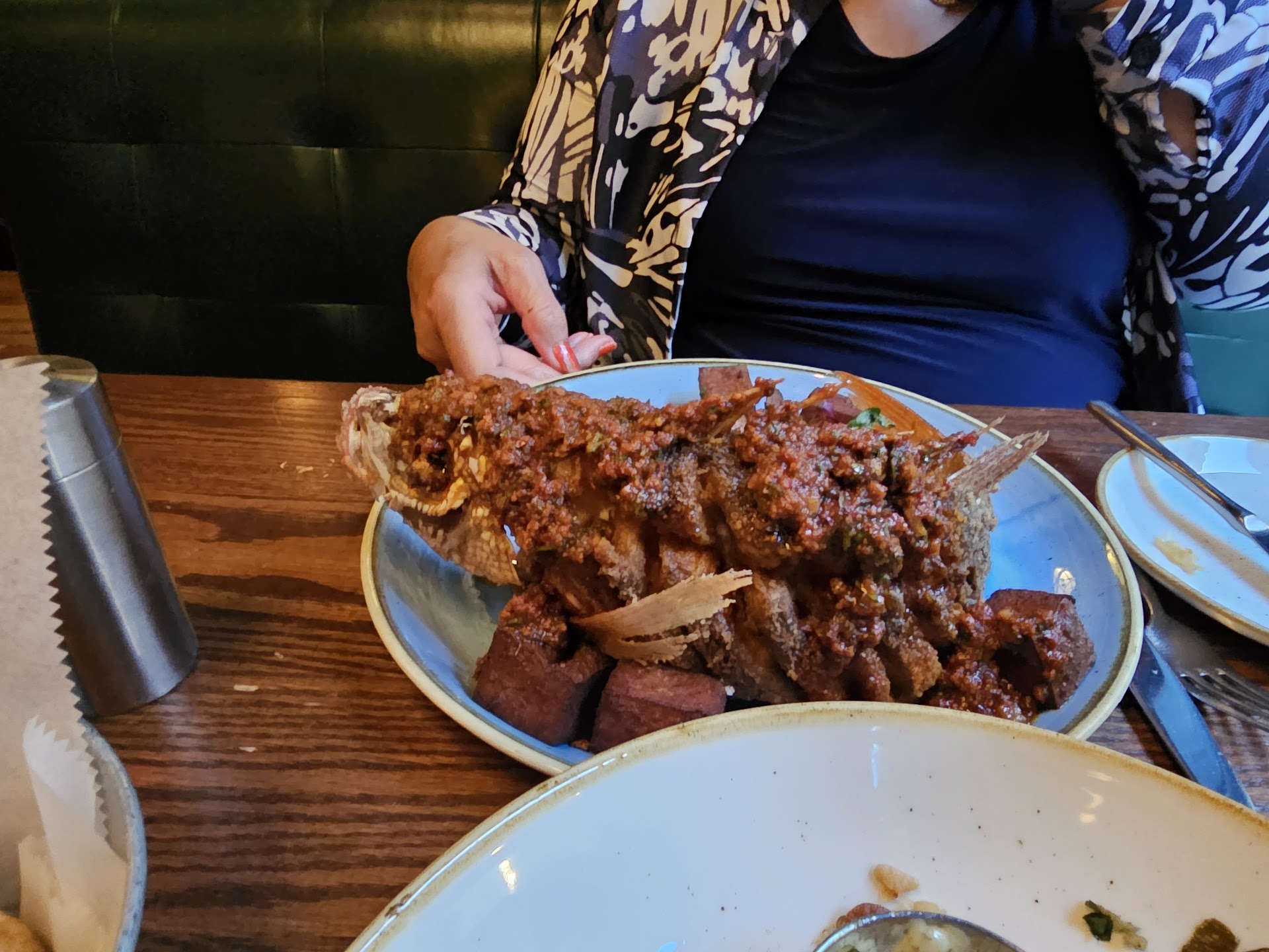 We were celebrating our 38th Wedding Anniversary and decided to do it at Saltines after a Great visit in mid-February. We booked (Open-Table with "Anniversary" as Special Occassion) for 22 Oct 2023, 5:30 pm, called to reconfirm for a Window Table and remind we are celebrating our 38th Wedding Anniversary. We arrived a little after 5 pm, promptly seated by the window, and ordered some drinks, then Calamari and She Crab Soup. The waitress (Tyrene, Table 174, Check #815) never asked if we were celebrating anything or mentioned "Happy Anniversary" in complete silence but showed up promptly. The Soup was amazing, per my wife, and the calamari was lukewarm, well-overcooked, and hard. Next, we ordered the main course, whole red snapper, and I had the Bone In Hereford Ribeye (40oz; Steak on Stone). The Red Snapper looked pleasing to the eyes but tasted very old with a slight fishy odor. My steak was just as delicious as before in February, but the juices ran off the board, onto the table, and almost onto my pants. I brought this to the waitress's attention, and all she did was hand me paper napkins and walk away; no apology, offer another tray to contain, or even come back and collect the soiled napkins or check to see if the issue was resolved. The heating stone went cool halfway through the meal, and there was no offer to exchange or reheat. To her credit, she was pretty responsive to our orders for additional drinks but was one deep in the entire section where she had to service the customers and sometimes collect the dishes when the meal was over. This was a much different experience from the February 19 visit. Again, there was no mention of "Happy Anniversary," a little dessert or something to celebrate it, just pure silence despite putting this on the reservation submission and calling to reconfirm. We were disappointed with the visit and thought we would provide a review reference the same. Again, the 19 Feb 2023 visit was simply magical, which made us decide to celebrate our 38th Wedding Anniversary at Saltines. They were clearly off their game Sunday night. We may give it another try down the road but the wife is more interested in trying Grain and or Freemason Abbey Restaurant. ...
