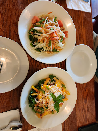 We were visiting the Virginia Beach area and did not really know what to expect from this restaurant. When we walked in we were immediately greeted by the host and quickly seated. We came in at an off hour so it was not too crowded. The facility appear to be very clean and well kept. The decor was inviting. They rapidly provided us with water and gave us a few minutes to peruse The Fairly extensive menu. We decided on the pad thai and the green curry. We also decided on the appetizer combo. I ordered a Thai beer which they brought out with a chilled can and a Frosted Mug which was a nice touch. The appetizers were delicious. They were crisp when they were supposed to be crisp they were full and succulent when they were supposed to be that way and every single item was full of flavor. The entrées themselves soon followed and were quite large. We had underestimated how large the serving sizes would be. The Pad Thai was tasty and not overly sweet or salty. It was perfectly seasoned in my opinion and we had requested hot which was appropriate level of spiciness for us. The green curry was similarly and very delicious and well seasoned period I'm going to Thai places seem to overdo it but this one was well done and full of flavor yet not hitting you over the head with it. Again the portions were large and we ended up taking at least half of both items home because we were so full. When we did eat the doggy bag portions at home 2 days later, both items were just as tasty. Highly I highly recommend this place as you will get excellent service and...