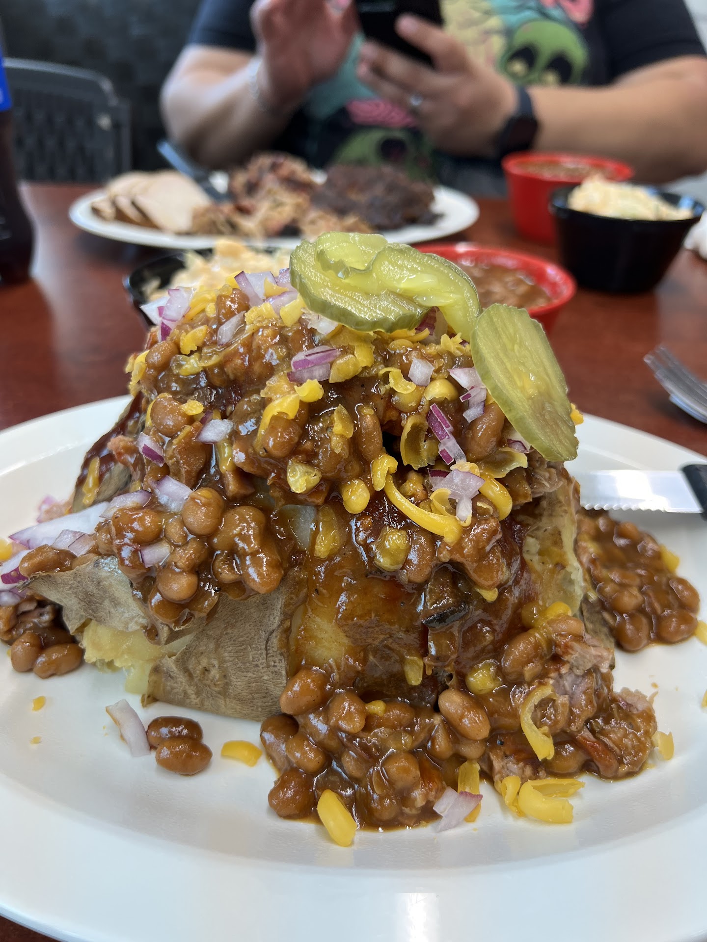 Read moreI had really high hopes. The 2 ladies working were super nice and helpful. The small indoor and outdoor areas were cute and very clean. I got the OMG potato. I wasn't very impressed. Who puts beans on a baked potato? My son got the Sampler ribs were great but the 2 sliders were just meat and a bun. There were 3 different bar b q sauces on the table, but they all tasted the same. He wanted Mayo on his sliders but when he asked for some they said they didn't have any!?!?! My daughter got the nachos and didn't even eat a quarter of them she said they were gross. All in all I would have to say I wouldn't eat...