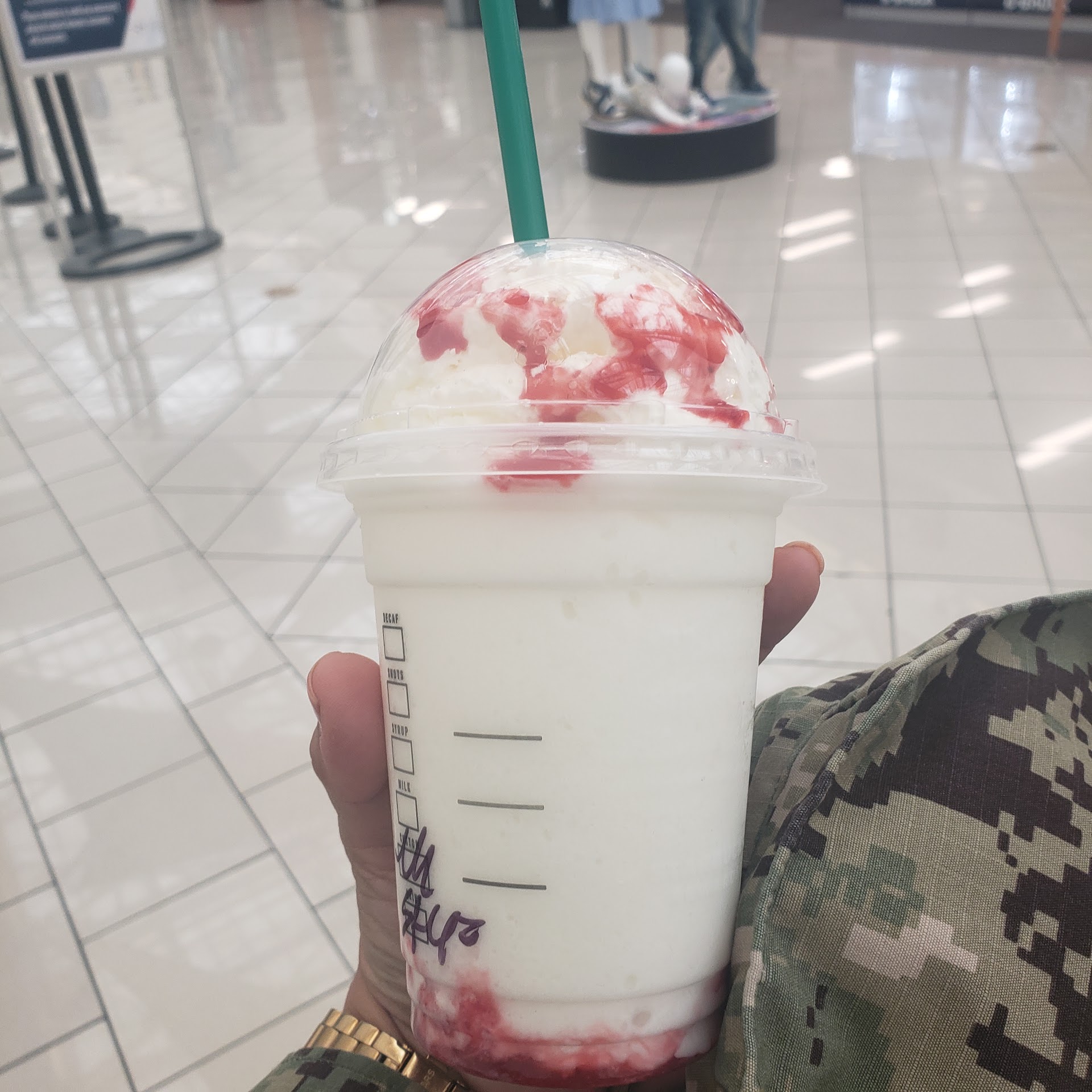 I really wish I could give no stars! I just ordered a venti iced matcha green tea latte with an extra scoop of vanilla bean powder and no ice....this lady told me that it’s an extra $1.50 because I don’t want ice in my drink!!!! Then, the other lady that was making my drink told me that vanilla bean powder is already in the drink then gave me the drink half mixed!! There was matcha powder all on the sides of the cup. Not only did they not give me what I ordered and payed for, I was charged more!! And the drink didn’t even taste good!! That’s my favorite drink that I’ve been drinking for years. Never going back there. So glad they just opened a Starbucks down the street. Don’t waste your hard earned money here guys. Especially if you work on a ship. They don’t know the stress we go...