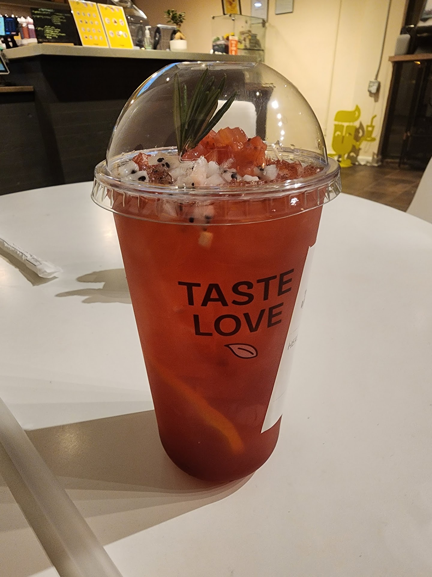 Read moreI was looking for something cool, fruity, and refreshing coming in and I definitely got that 😅 I tried the Heart On Fire fruit tea which is strawberry and dragon fruit ^^ My friend got a mango Boba tea that tasted nice too ^^