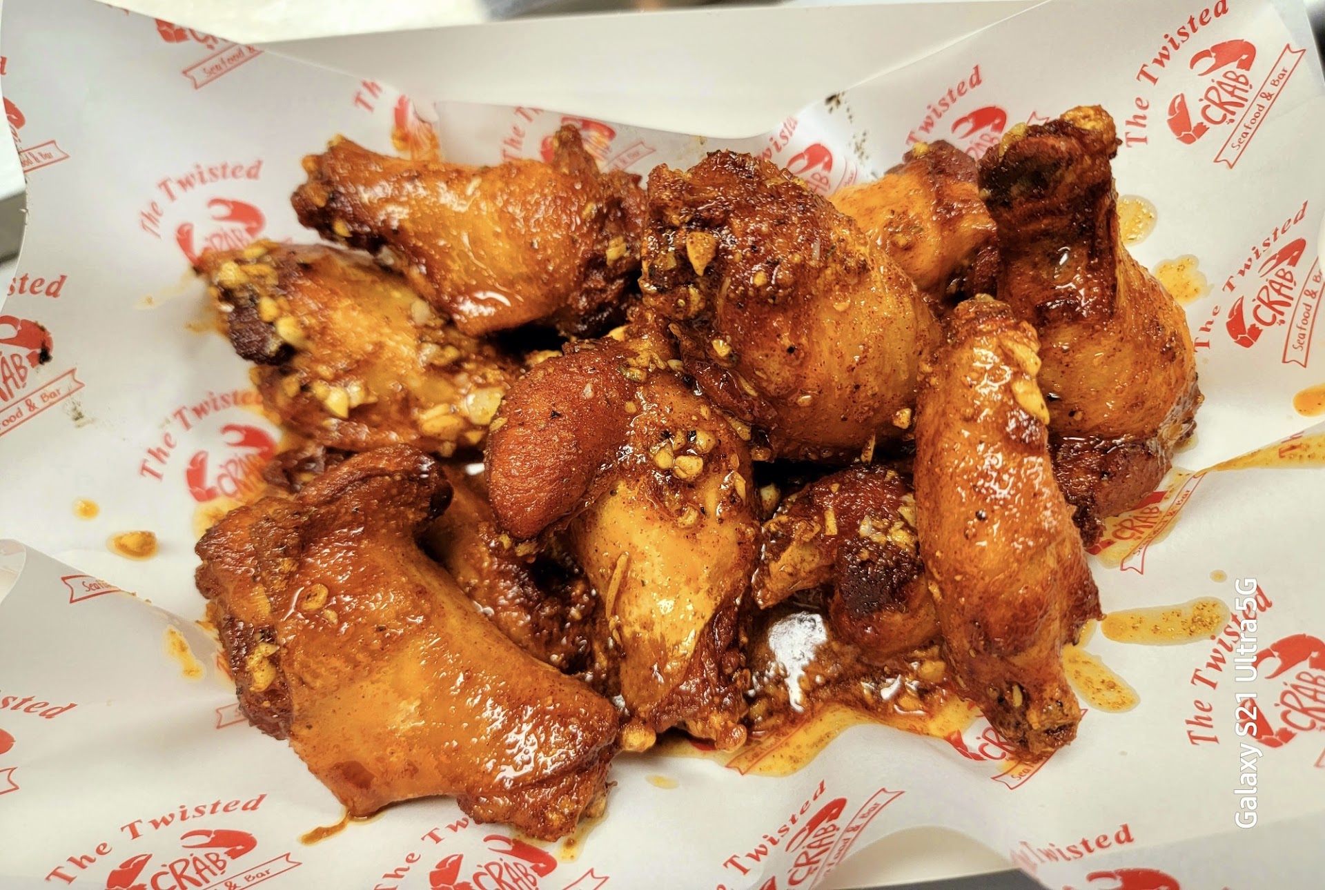 Read moreWe went into Twisted Crab, not really knowing what we were going to order. My husband started out with wings and I ordered the clam chowder, which I didn’t like. It was too floury. So I ate my husbands wings, which were very good and he ate the chowder. The we ordered a pound of crab legs and a pound of shrimp. It came with 2 1/2 corn cobs and 2 small red potatoes. Boiled with the seafood and seasoned and oiled in the bag with the seafood. We have always been served butter on the side. Never has a seafood boil been served to us all greasy like that. But we didn’t complain, just asked for it to go. Our server seemed very unhappy, like she didn’t like serving people. My husband tipped her 20%. As we were leaving we saw a sign that said free drinks with a pound of seafood. So we should have gotten a drink or two with our order, since we ordered two pounds. He asked our server why she didn’t tell us about the special. She said it wasn’t her job to tell us. Then she went off on my husband, flinging her arms around and swearing. The seafood boil was nasty, over cooked, over spiced and in a pool of oil. No it wasn’t butter, it didn’t solidify in the fridge. Bad food, bad service. No...