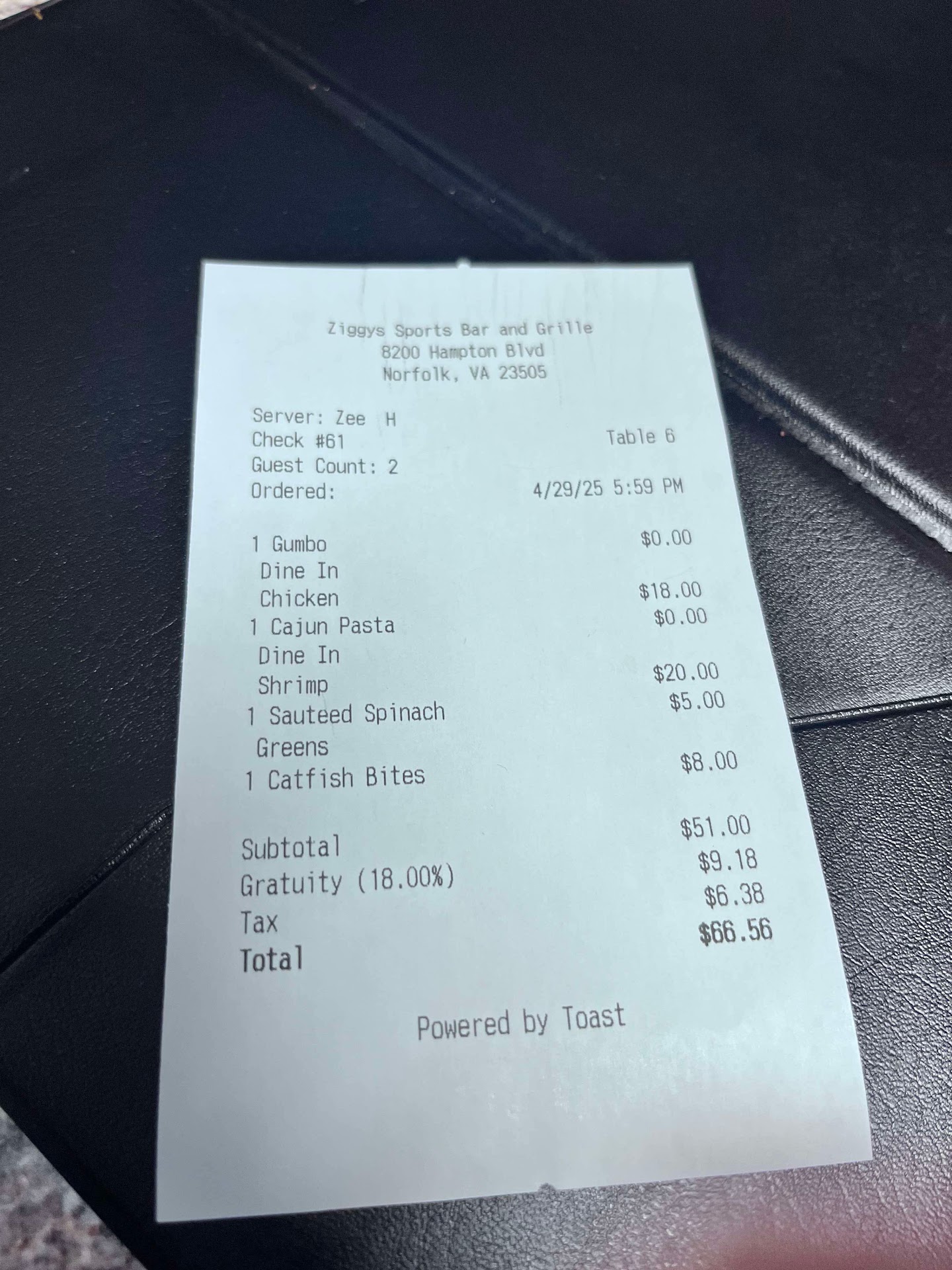 Read moreI recently had the pleasure of dining at Ziggy's Bar and Grille, and it was an outstanding experience from start to finish. The service was impeccable—attentive without being overbearing. From the moment we walked in, we were greeted warmly, and the staff remained friendly and professional throughout the evening, making sure all our needs were met.