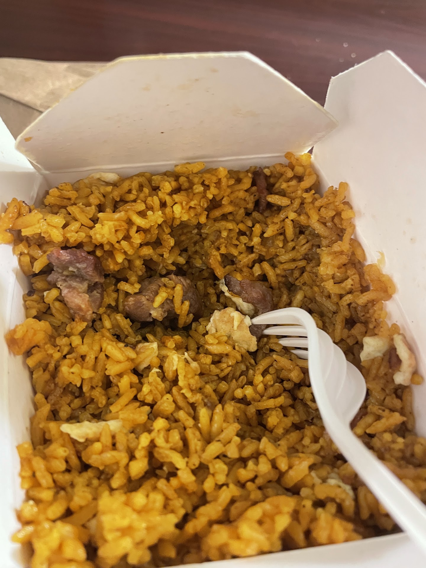 I ordered a chicken dish and it was watery and tasteless, and very expensive. The white rice was a funky consistency and the breading on the chicken was burned and weirdly chewy. The sauce was thin and tasteless.
