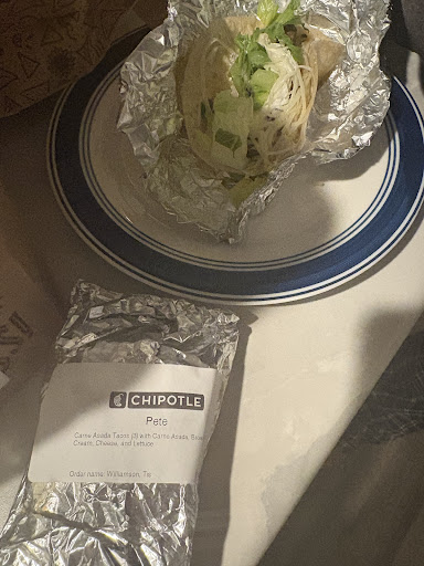 No major issues other than weird toilet paper. Came in while on road trip and went to bathroom. Toilet paper very thin and two fresh rolls jammed in little metal cubby. Was a fresh roll on top of cubby but seemed weird and maybe gross. When I tried to take the roll from the metal cubby it was all jammed in there and started ripping and shredding it up. I was so befuddled but eventually managed to get a small bit of toilet paper. This is why there is a shredded piece of paper left atop the metal cubby in the first stall of the women's bathroom. Do not be alarmed. It is clean. Just very shredded up. Fix this please. Food was done correctly. My friend could not wait inside because it was too cold and wandered away. Wandered very creepily into bushes. We could not find them so did not know if we were in the right place or not. Eventually found them and we were in the right place. Food was 3 mins behind schedule. Should have been on schedule. 0 mins behind schedule. We got burrito bowls and burrito. Burrito bowls not always good choice. I told my friend that because they are basically diapers from here. Very big and leaks beans in car. Tastes good though. Other bowl was good. All silverware and napkins in bag. Nothing left we ate it all. Actually I forgot but there is 1/4 of diaper burrito left because it was just too big. Also some chicken left because it was suspicious with slimy skin. Most of chicken good though. Service great. Seemed like they could have cleaned more because many staff and place not busy. Not one clean table. Other than that,...