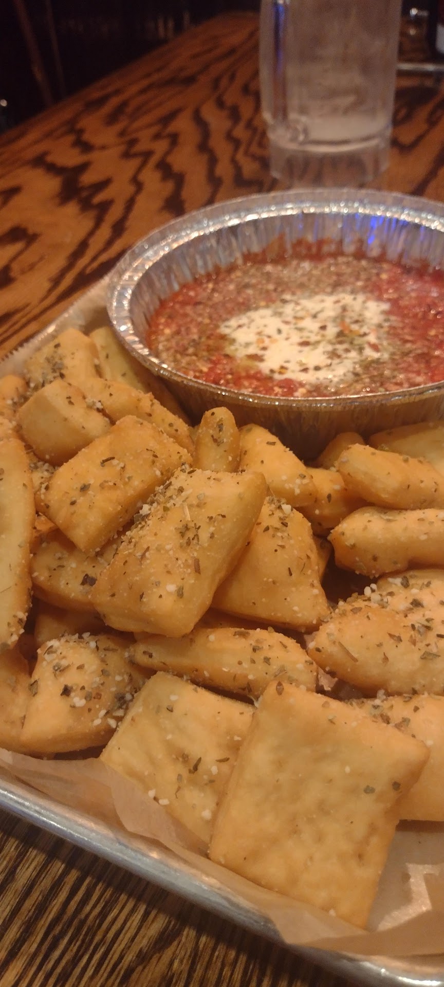 She took our drink order and then disappeared. Another 5-10 minutes went by before she reappeared, we had ordered Cokes and she was the one who had to change out the tank. She took our order and then another fifteen minutes went by before we got our only appetizer, bread bites that were hot but the bottom of the container was a pool of grease and butter. We ate the top layer but passed on the rest. Plates, napkins and silverware didn't come to the table until after the bread had been on the table for a while.