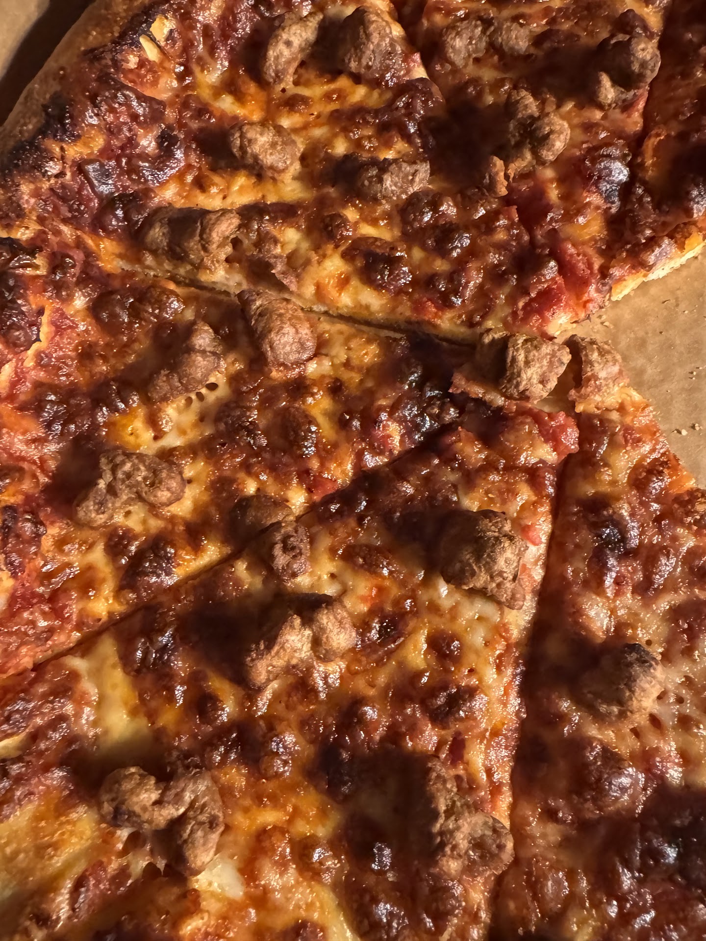 Pizza Hut isn’t stellar to begin with. This location takes corporate, homogeneous, terrible food to a new low. My husband wanted for a night with family and our two toddler grandsons. 5 of us ordered 2 pizzas and 1 order of breadsticks. $48 with a “tip” for carryout which, let’s face it, just allows the corporation to pay his staff less. I got a email saying it was ready before I went inside. The wait was ridiculously long. No one acknowledged us at the counter for a good 10 minutes. People were mad waiting for food when I got there so obviously it wasn’t just me. Well over a half hour of waiting inside, and checking multiple times at the counter, they finally brought out my food. Drove home and got everyone to the table, only to find one of the pizzas-the one meant for the adults of course, was burned, dried up and cold. Sausage looked like specs of ground beef. Stuff crust was melted completely into the bread. It wasn’t just dry, it had that disgusting burned taste.
