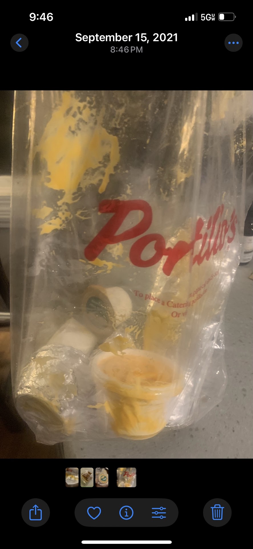 Read moreDon’t waste your money going here. You have a 50-50 chance that you will be missing items, your order will be inedible, or a complete mess. I placed an order for three sandwiches and two fries. I Received one sandwich and two fries, which were cold. I called The restaurant and was directed to DoorDash. When I called DoorDash they offered me a refund until they discovered I ordered off of the Portillo’s website. I was told I needed to get a refund through them. I tried to get replacement items, but I was told they could not do that because they were closing in 30 minutes. I requested a refund since I received 1/3 of my order and the portion I received was cold. I was told I would be receiving a refund in 2 to 3 business days. I ended up throwing the fries in the trash and splitting my one cold sandwich with my child and cooking my own frozen fries at 10:30 at night. I was prompted by email to complete a survey. When I gave the details of my order above , I was given a credit of two sandwiches that I thought would be in addition to my refund. I never received my refund as promised. When I contacted customer service, I was told I was given a credit that was “compensation and a gesture of good will”. My idea of customer service is not making an additional trip to get my “2 free sandwiches” that I already paid for and never received or the 2 orders of cold fries I threw in the trash. This “good will” equaled 1/3 of the value of my total order. I paid $61 for one cold sandwich and 2 cold fries. The whole 61 dollar order was trash and Portillo’s thinks that two free sandwiches is more than an adequate response....