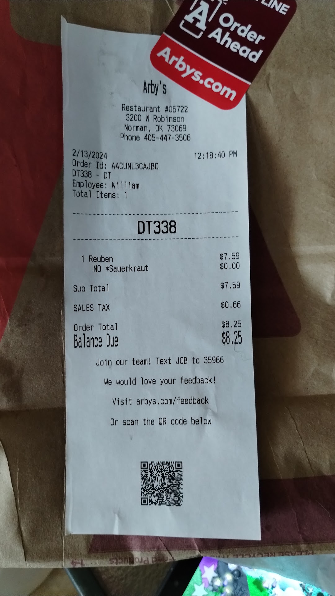 This Arby's just seems like they don't listen to their customers. I was going to be inconvenienced twice just to get the food I already paid for. Hopefully they can train their employees to actually listen to their customers. I'll be going to a different Arby's...