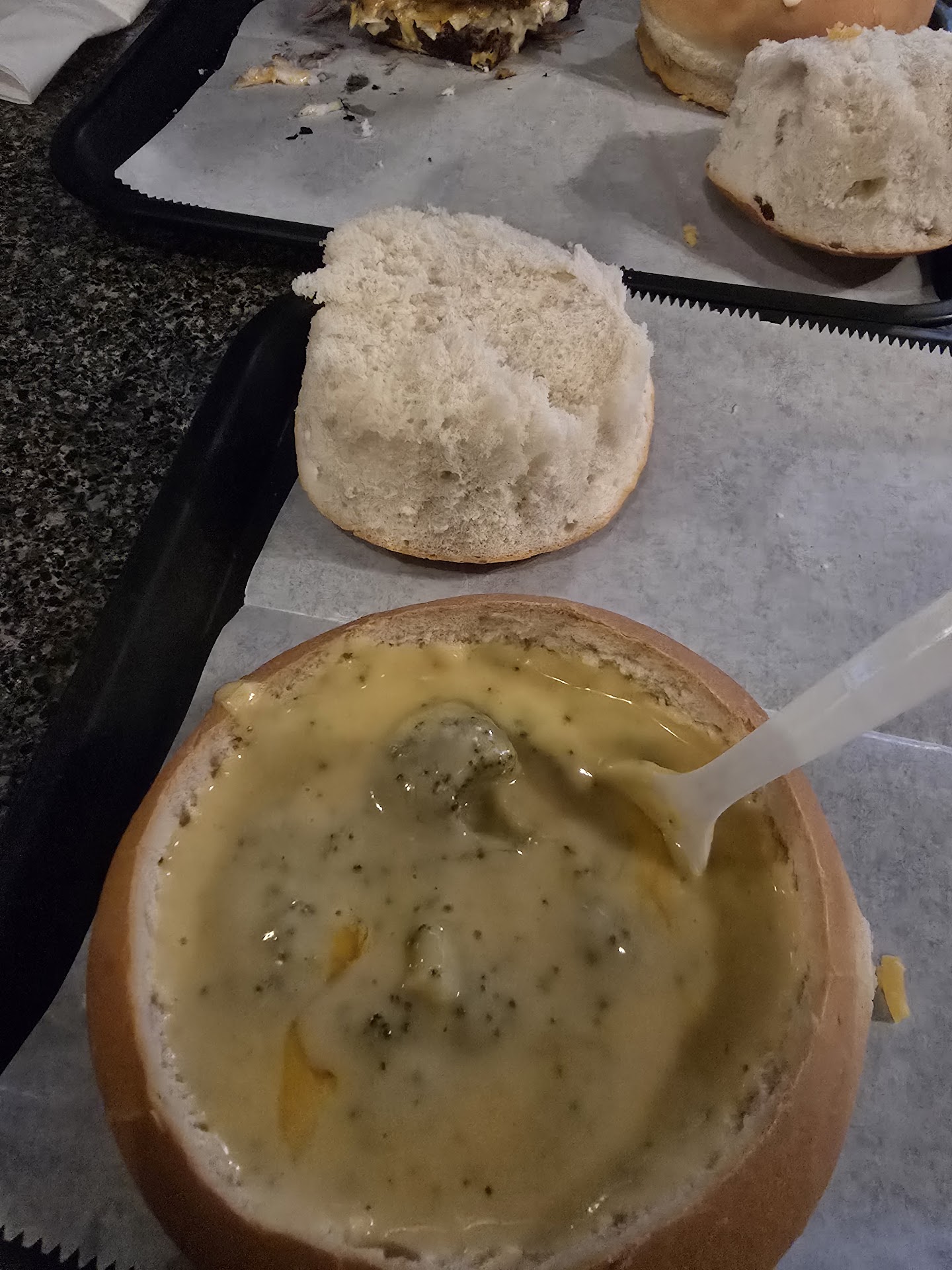 The food is delicious. I was a bit puzzled by someone's description of it as "greasy." Bison Witches sells sandwiches, soups and salads -- there's really no grease in anything, unless you count the pre-packed chips for sale and, really, that's sort of an "I didn't know Oreos would make me fat" argument. I can only guess that the person, perhaps in an impaired state, confused Bison Witches with somewhere else (the nearby Garage, maybe?) or simply wanted to say something negative about a place they've never actually been and assumed would serve things like burgers and fries when they don't.