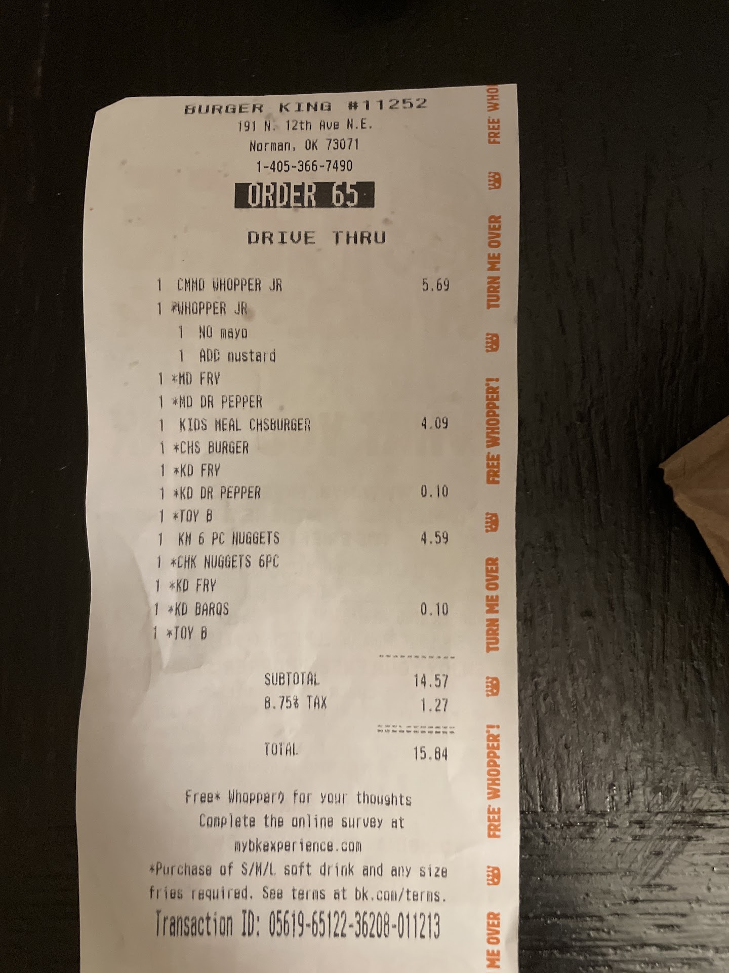 Thank you, Burger King on 12th Ave. We will be returning back to our thrones in your...