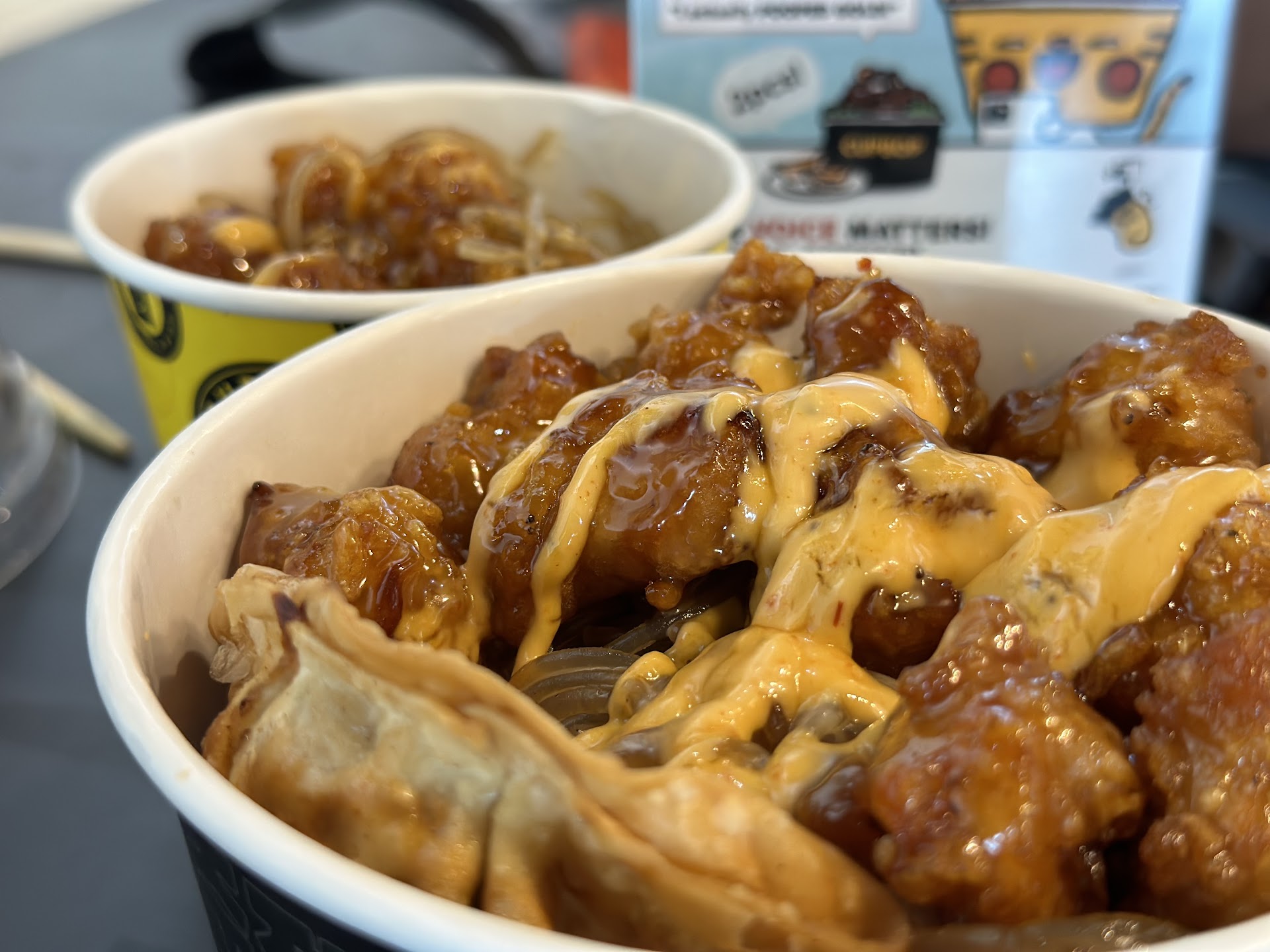 Honestly surprised this place has so many positive reviews, which is what drove us to choose it for dinner. As soon as we walked in: it was greesy EVERYWHERE- I mean grease dripping off their signage, footprints on the floor and on the chairs and tables. Every table was dirty. There were bugs (no not just flies, which were also everywhere) like beetles crawling all over the floor and walls. The employees looked utterly clueless- the first 10 minutes after we ordered they stood around and talked. Then finally started making food. After about 15 minutes they had started finally dishing out the bowls. (Setup is similar to Panda Express, they just have to grab a bowl and dish out the food while someone makes the fresher food in the back) and while orders started piling up it just started getting stale and the employees seemed confused about what they were dishing out. My fiancé and I didn’t even wait to taste the food, after about 20 minutes he went to get a refund. The manager came out of the back and asked if we didn’t like the food, my fiancé politely explained that we were waiting and noticed how flustered the employees looked while food just sat there. She quietly said she’d give him a refund online and then retreated to the back. Didn’t stay up to help her team. Her staff clearly needed direction and help and she just went to go hide in the back. We took our business to Fuzzy’s...