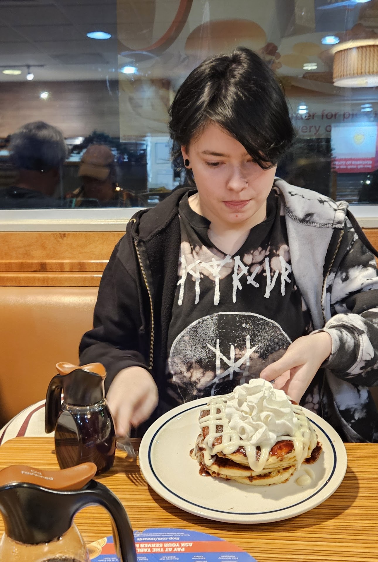 Read moreOk, lets start with one: I drove further away to this Ihop, hoping it would be better than the one closer to us. Nope... Ok, the waitress was rude but with a smile... She wouldn't even give us a high chair for my son. Said that we either had to move, or use a booster seat. And pretty much shoved it in my face. Which booster seats in a cloth fluffy booths don't work well, it kept slipping and my son almost kept falling out. So i just took him out of it. Then she didn't give us any silverware, the guy that brought us our food did that. She also didn't get my son his drink that came with his meal, didn't ask for it or anything, and when i asked about it she scuffed. My pancakes didn't have what i wanted on it, the ice coffee i had was horrible, and i had quite a few(they were free refills, like duh), each one was too sweet and just nasty. Until i got one to go, AND it was prefect 😣😑. She didn't give my son his snack, that came with his meal. AND she charged 1.00 each, extra because my son and i wanted scrambled eggs with cheese. i have never paid without at least being told, but never have i paid extra for scrambled eggs with cheese at Ihop, and we go often... She also hardly came to our table, but one of the times she did asked if we wanted to keep our dirty plates for our pancakes, then tried to leave it even we said no. Like the whole thing was horrible. We went to the one further away because the one closer is always slow, like super slow! But I'll take slow over last night's service any day. So yea that was my experience last...