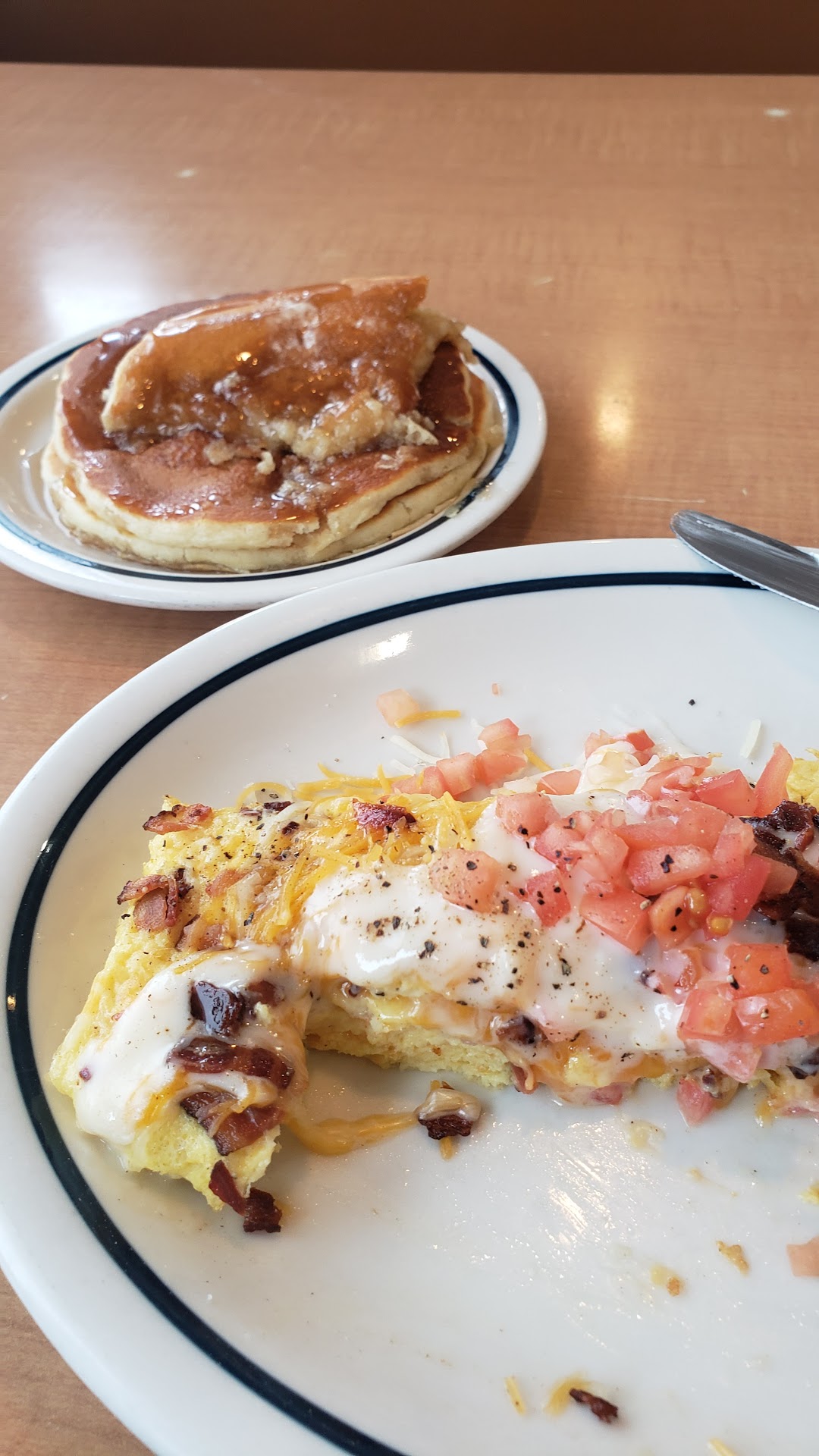 If you want your food right avoid this place at all cost drive to Westside IHOP for better. It is legitimately a joke at this point we go every Monday and the previous last three times weāve gone our orders were messed up. We started calling in instead of going up there the last two times I called in my order was messed up. I get the same thing every single time the spicy poblano burrito. They always take out the poblanoās and Serano peppers when thatās not what I want. I specifically request no onions and no red bell peppers but I do want the spicy poblano and Serrano. Somehow they always take it all out instead of leaving the spicy peppers. Iāve explained it every possible way every single time Iāve ordered hoping that maybe theyāll get it right. Today was the biggest joke Iāve ever experienced at a restaurant. Called in the order verbatim said spicy poblano burrito please no bell peppers or onions but leave the Serano and poblano the lady even repeated it back to me I also got a split decision for my husband instead of French toast he wanted biscuits and gravy sub. I get there I asked to pay, The lady said let me get my manager. They brought the food out I looked at it and they gave me an omelette instead of a burrito. He took it back. Then I looked at my husbandās food and they also forgot his pancakes and biscuits and gravy. So they took everything back. The younger boy working brought my food back up there I said is the burrito done like I asked he said yes thereās peppers in it. Then I noticed they also forgot gravy again but had the biscuits. Another lady brought out the gravy and handed me the bag to go. Said have a good day. Get it home open it up the burrito has no peppers once again like for the sixth time. My husbandās food ended up being correct fortunately but it is literally like a joke at this point itās just utterly ridiculous they canāt get one burrito right ever. We were coming weekly, we will definitely never eat here or order here again at eastside. Itās sad. No one was rude but you can tell thereās a communication barrier between cooks...