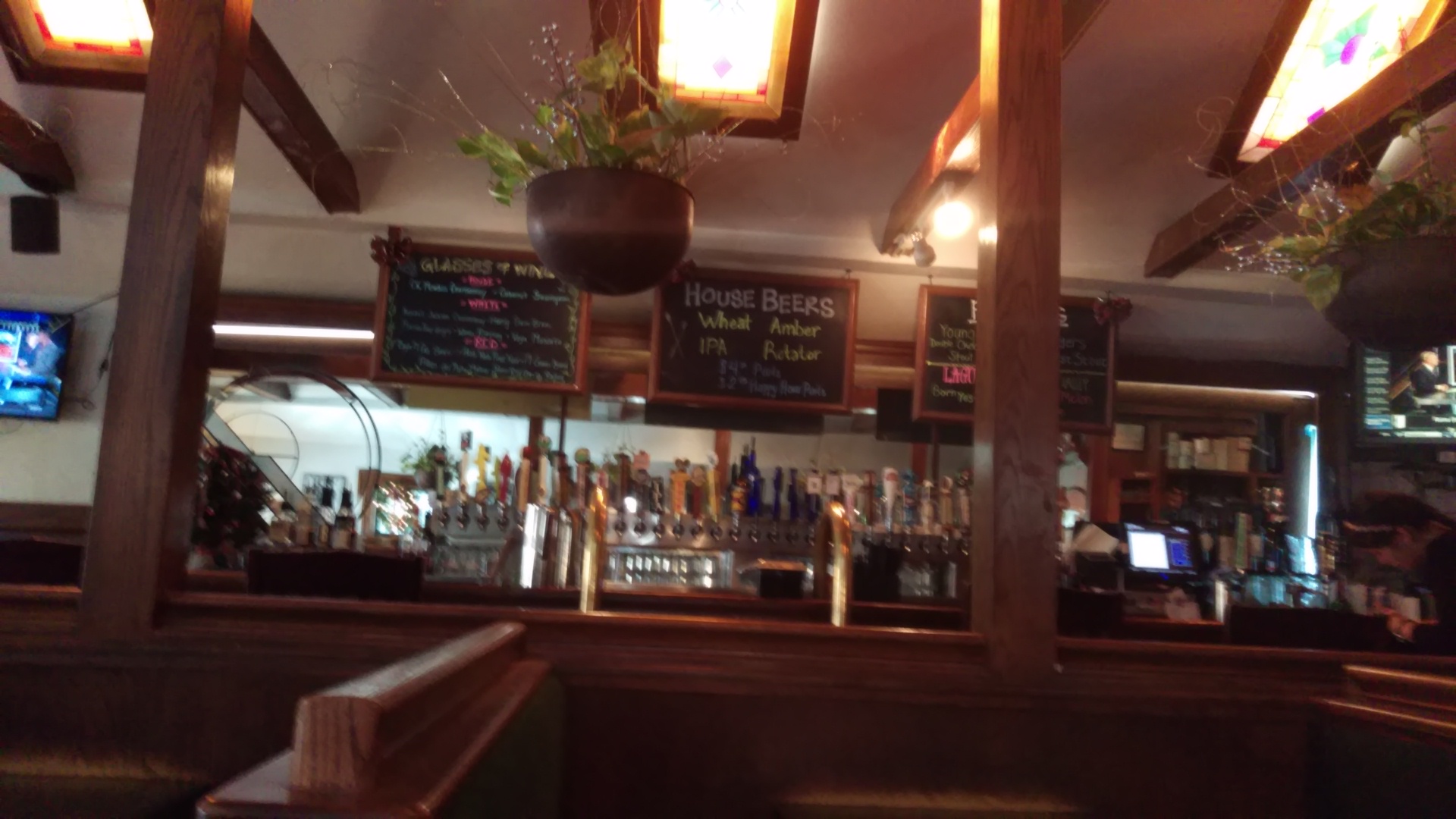 Inside, the ambiance is really defined by the stain glass windows they have in the ceiling, kept from what the billing originally was, I think.