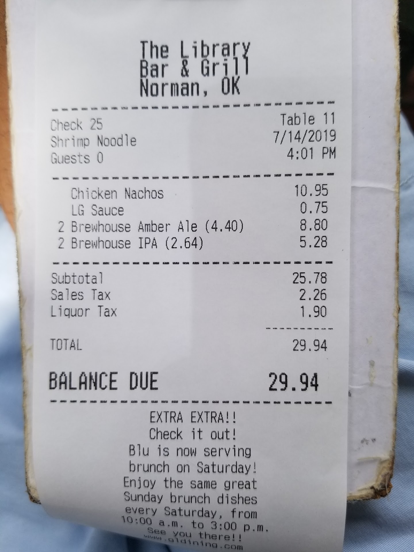 This is 'the spot' to be at in Norman, weekdays it's got a great atmosphere for studying, hanging out or meeting new people. The Library's relaxed atmosphere picks up on weekend nights to compare with the bigger and more clublike bars, but manages to keep everyone feeling comfortable and happy! Their selection of alcohol is one of the best in town and the food is top notch. The grill is definitely isn't your average bar food; It's served to order, hot, fresh and it's definitely restaurant quality.