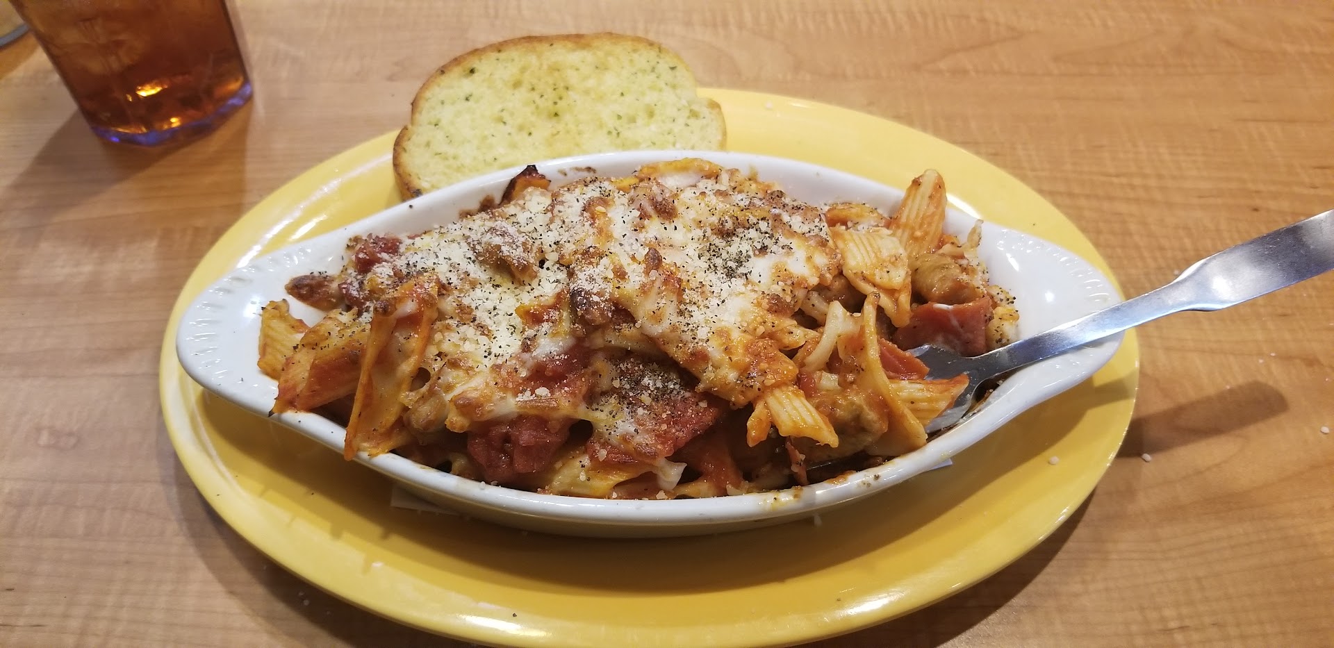 When we went in and ordered was told it would be about 20 minutes and there was maybe 4tables with people at them all except 1 had their food. We waited the 20 mins the wife ate her salad. Still having the little plastic number sitting on the table when the waitress came out and went to get the empty salad plate and asked us there anything else I can get you ... I replied yeah our pizza how much longer is it going to be to wit she replied you haven't got it there's nothing in the ovens... well 20 more minutes and they finally got the pizza to us no refund just a upgrade from med to large. And the pizza dough when we got home was under cooked last time I will go there makes about 4 or 5 bad experiences there and I end up going because a friend or the wife wants to or they try to convince it's got new management or workers . Its obvious they just don't...