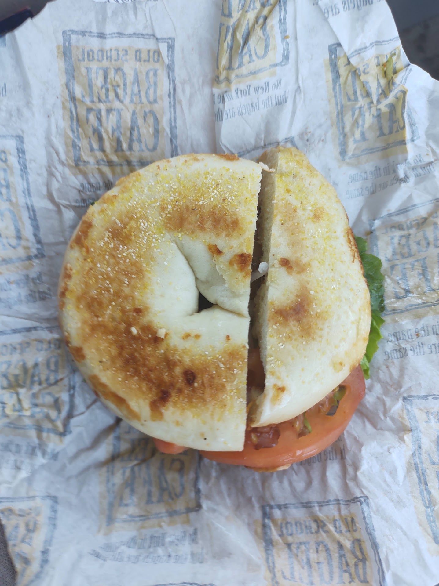 Read moreSo my husband and I were excited to try Old School Bagel Norman. We were on our way out of town and decided to go through the drive thru. I was glad we stopped in the parking lot to get things ready to eat. Both of our bagels were supposed to be toasted but they were brunt on the inside. My Asiago bagel was black and not edible. I'm not sure who was checking the quality of the the food coming down the line but I would hope this is not the standard for their drive-thru food. As I walked back inside there was a thick smell of burnt food. I went and asked if they would please remake my bagel and that it would be toasted not burnt. I told them that both of the bagels were burnt but that mine was the worst. The girl did ask if I wanted both remade but I said that my husband still had decided to eat his. They were not busy. There were four employees total. One drive-thru customer and one inside customer waiting on their order. They did remake it and it was just barely toasted... better that than...