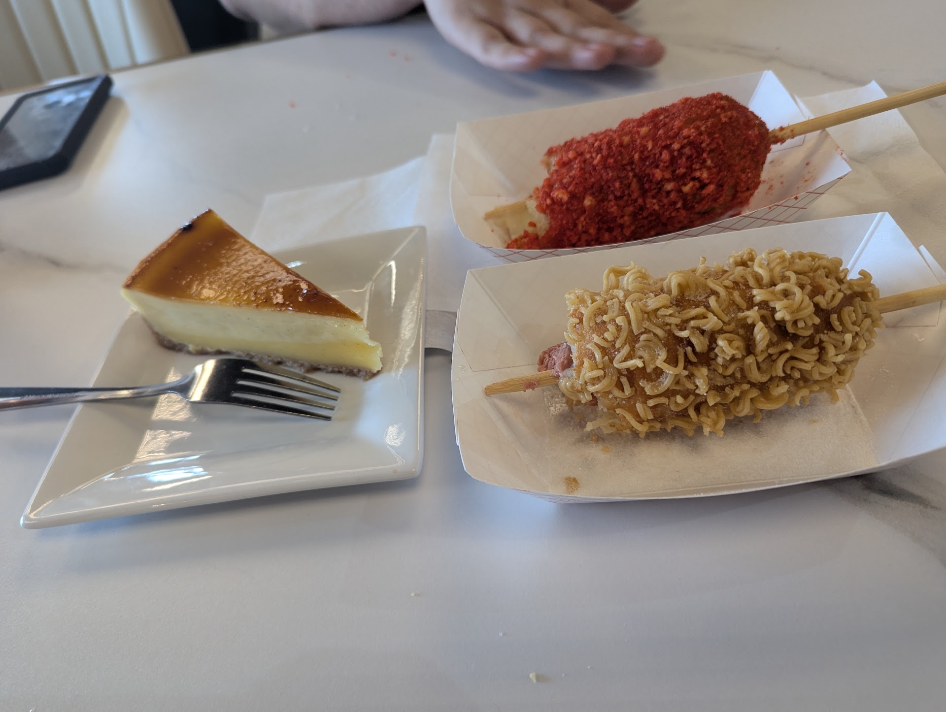 Oh!! They also have specialty house made corn dogs!! We tried one that was all cheese in the center, dipped in diced potatoes, and deep fried corndog coating!