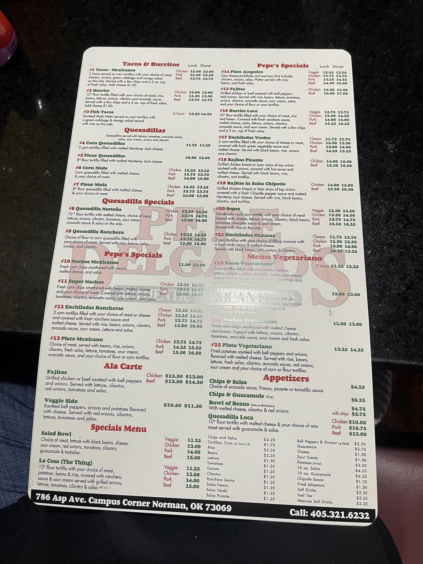 The biggest inaccuracy is the pricing. I assumed from previous reviews and the general appeal of the restaurant/bar that Pepe Delgados would have cheaper Mexican food. Oddly, there is a dinner and lunch pricing difference. Really? For a self-service, counter-ordered, hole-in-the-wall restaurant? Dinner prices per person were between $10-14 and sadly the portions were not at all impressive.