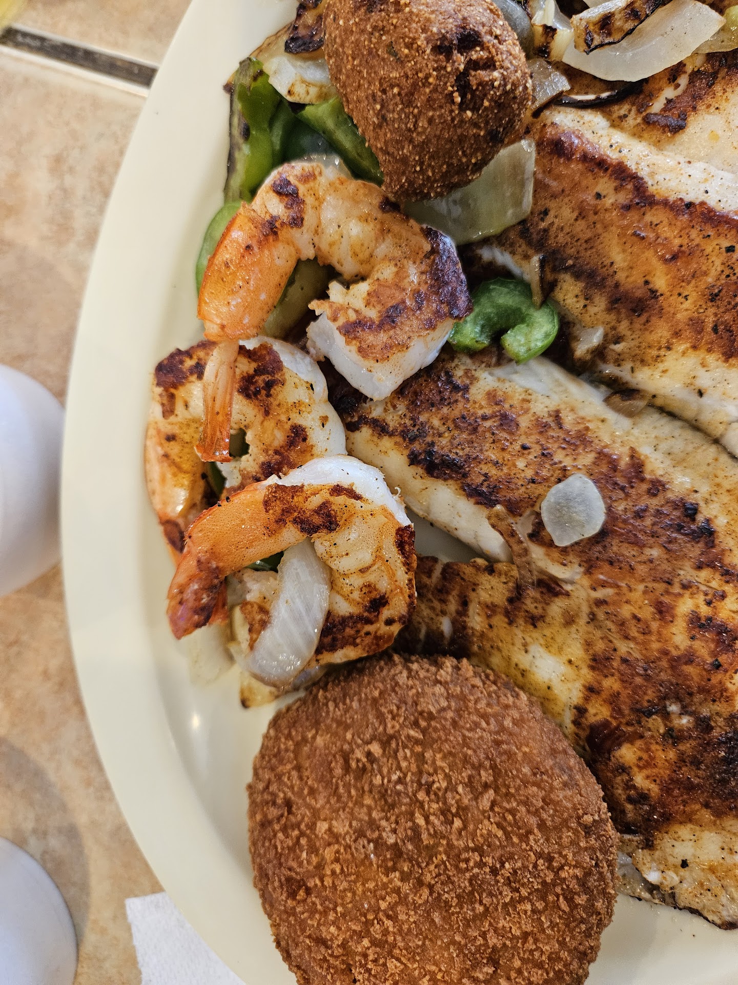 Read moreDined at this location when visiting my aunt in Oklahoma City. We were greeted with warm welcomes and smiles upon entering the restaurant and were quickly seated. The restaurant decor was an eclectic mix of underwater style and old world charm but tastefully done. It definitely gave the eyes something to do while waiting on the food! Our waiter was very polite and helpful, informing us about the specials and answering our questions. I ordered my catfish and shrimp grilled with recommended rice and beans and fries. The fish and shrimp were simply delicious with lemon pepper seasoning. It was not rubbery. The shrimp were a good size. Also, the seasoning on the fries was to perfection. The red beans and rice needed a little more rice and slightly less salt but otherwise was very tasty! The hushpuppies were simply delicious. Free refills on drinks added to the value of our meal. I definitely will come back to dine here on my next...